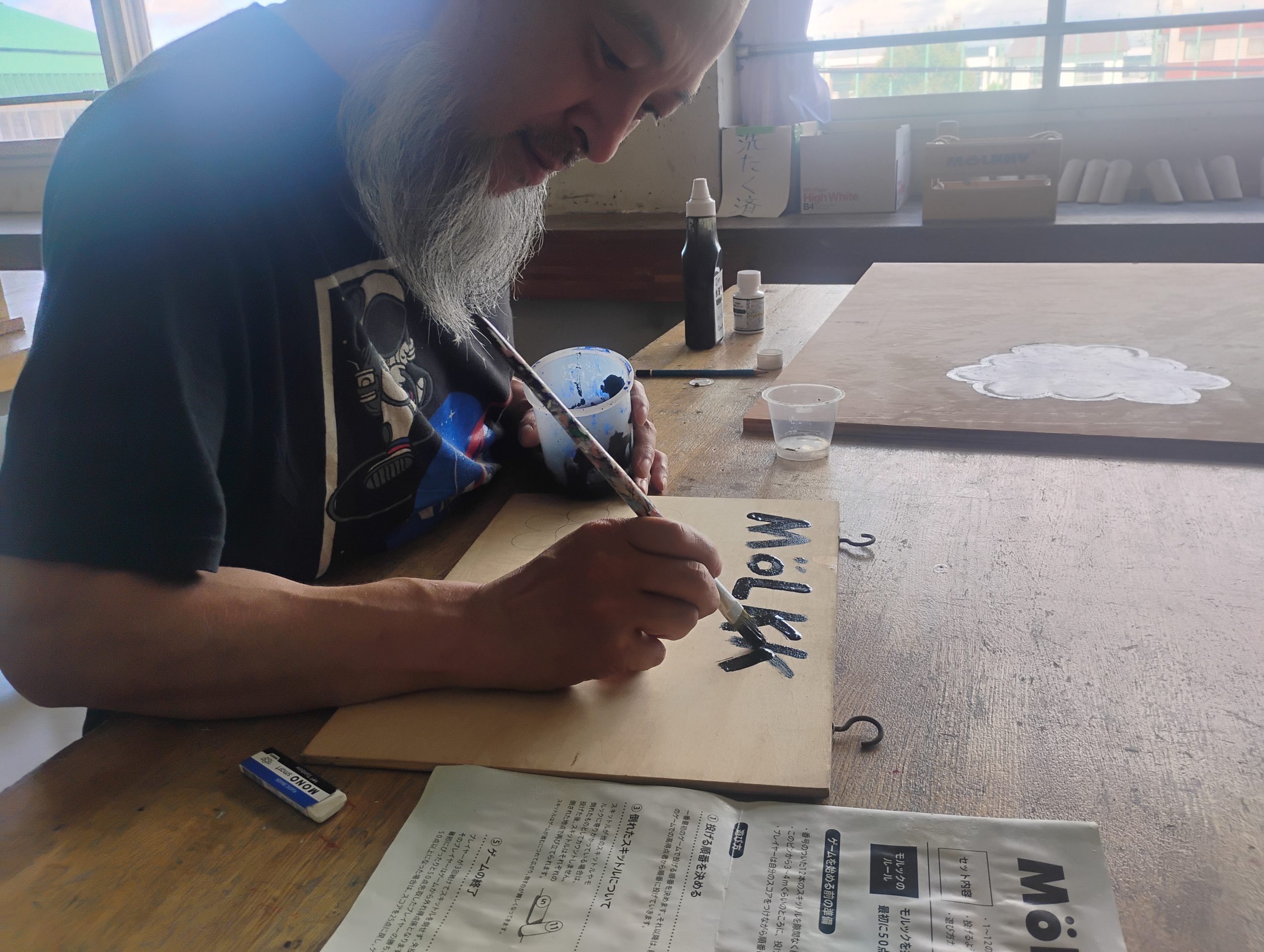 2日目の最後は、モルックコートのペイント。