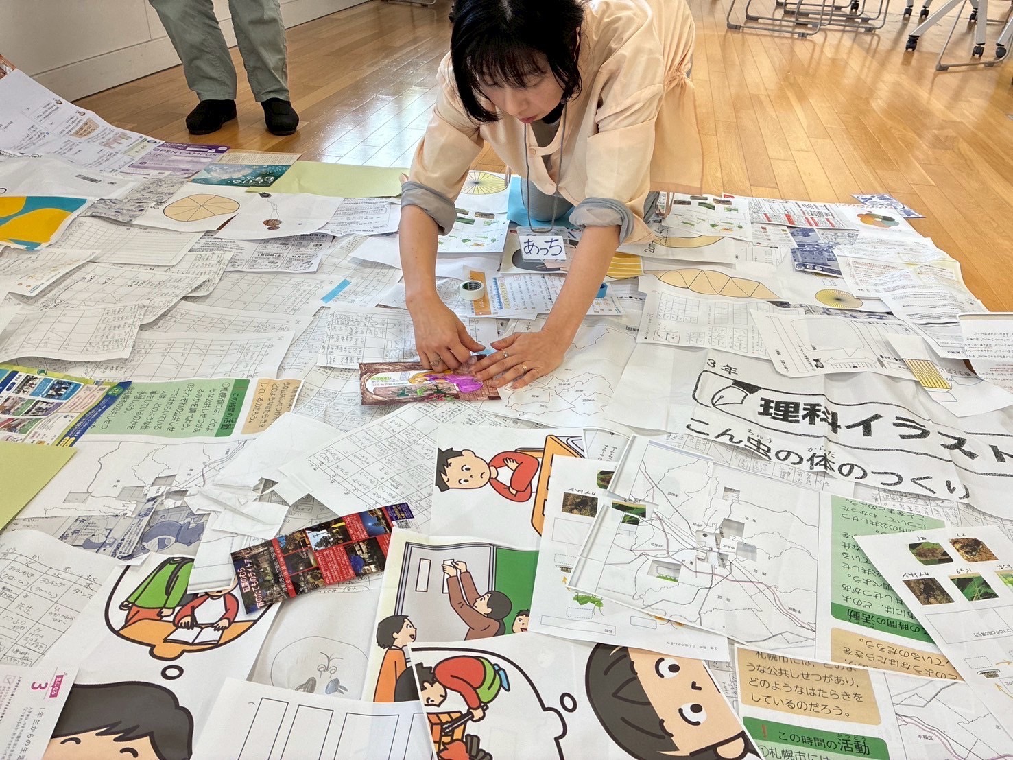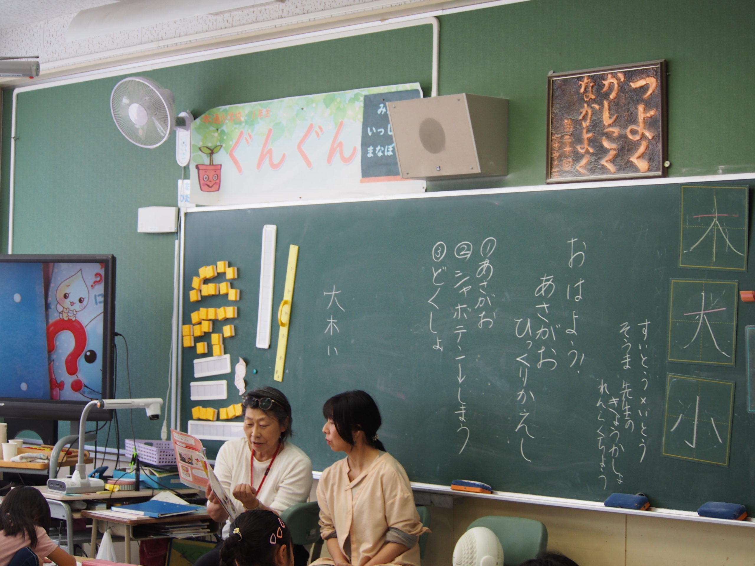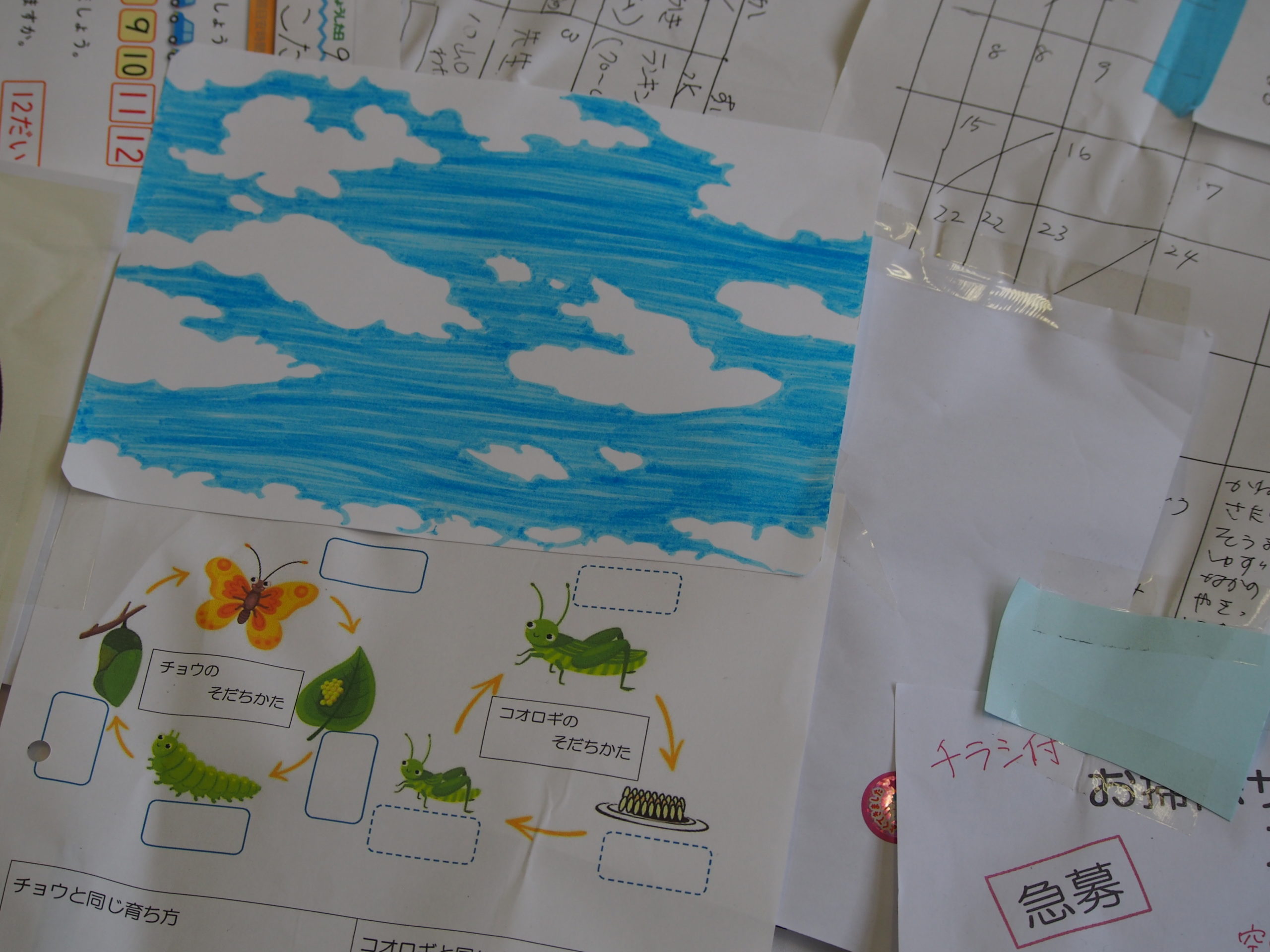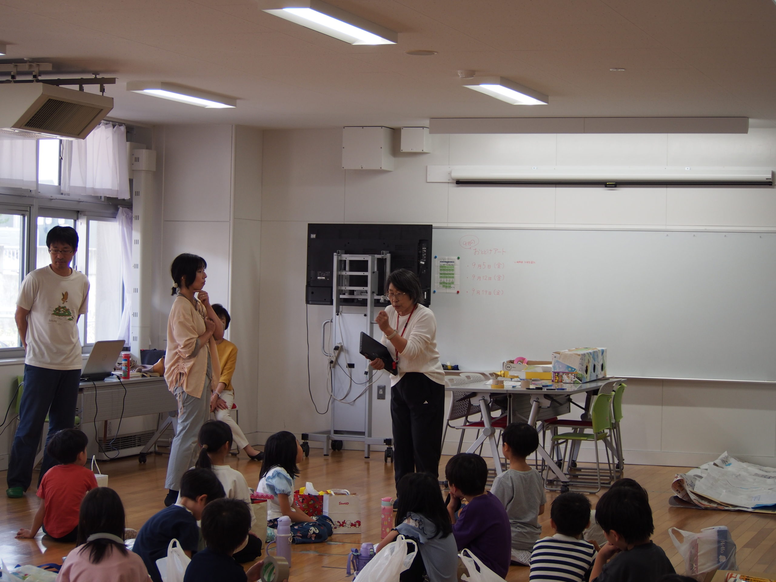 水分補給をしながら、授業の感想、色々話す。部屋の移動で忘れ物に困る子が何人かいて、一年生なのでクラスメイトの子が持っていこうとすると、先生の「自分で」の一声で、ぱたぱた走って取りに行く子。すぐに完成して、手持ち無沙汰になる子、作りたいものを思いついたけど、どうやって作れば良いのかわからなかったり、作る時の道具が揃わなくて中々完成させられない子。でも、ルールは「時間内」に「一人でやってみる」こと。