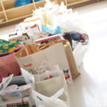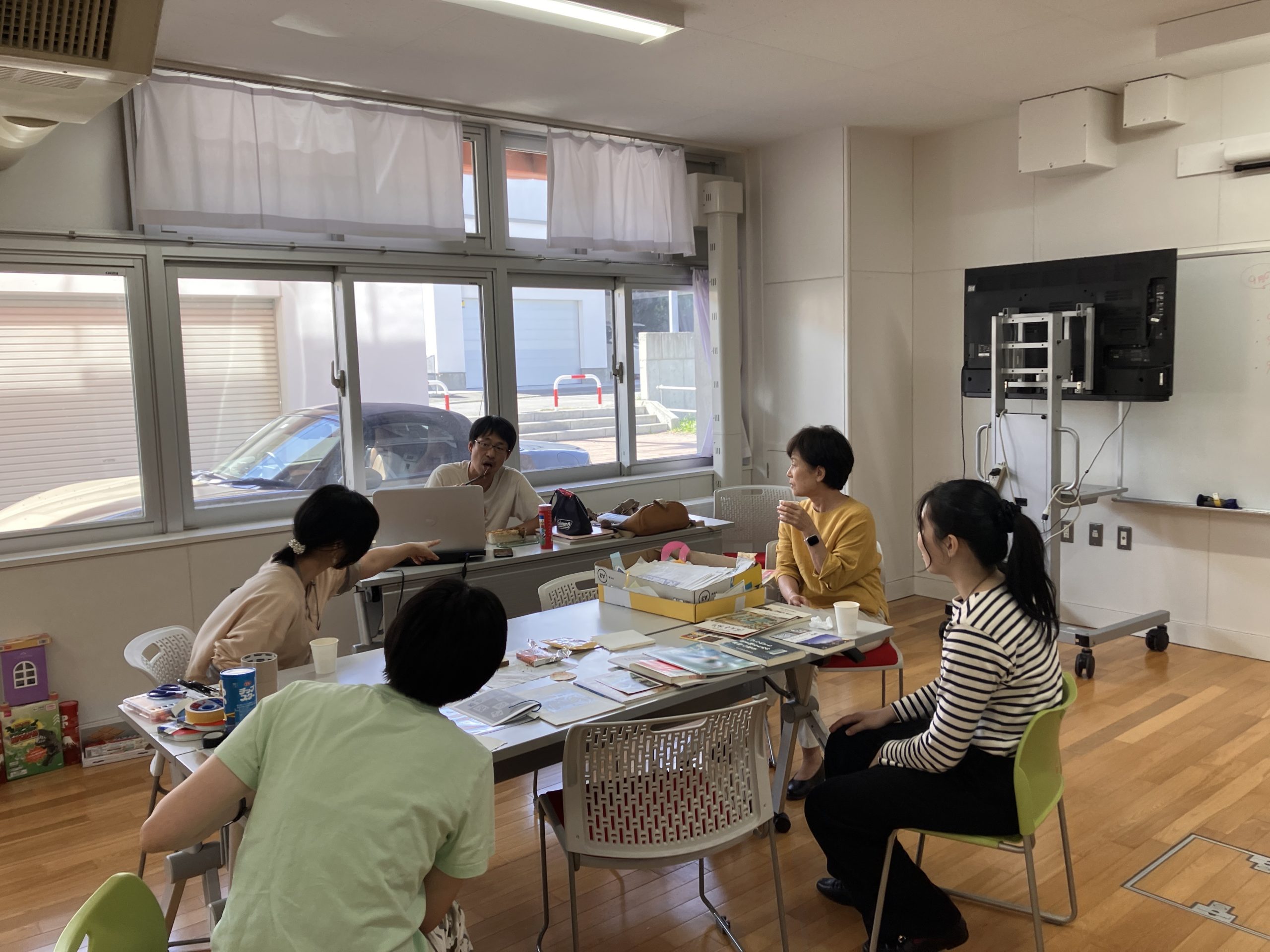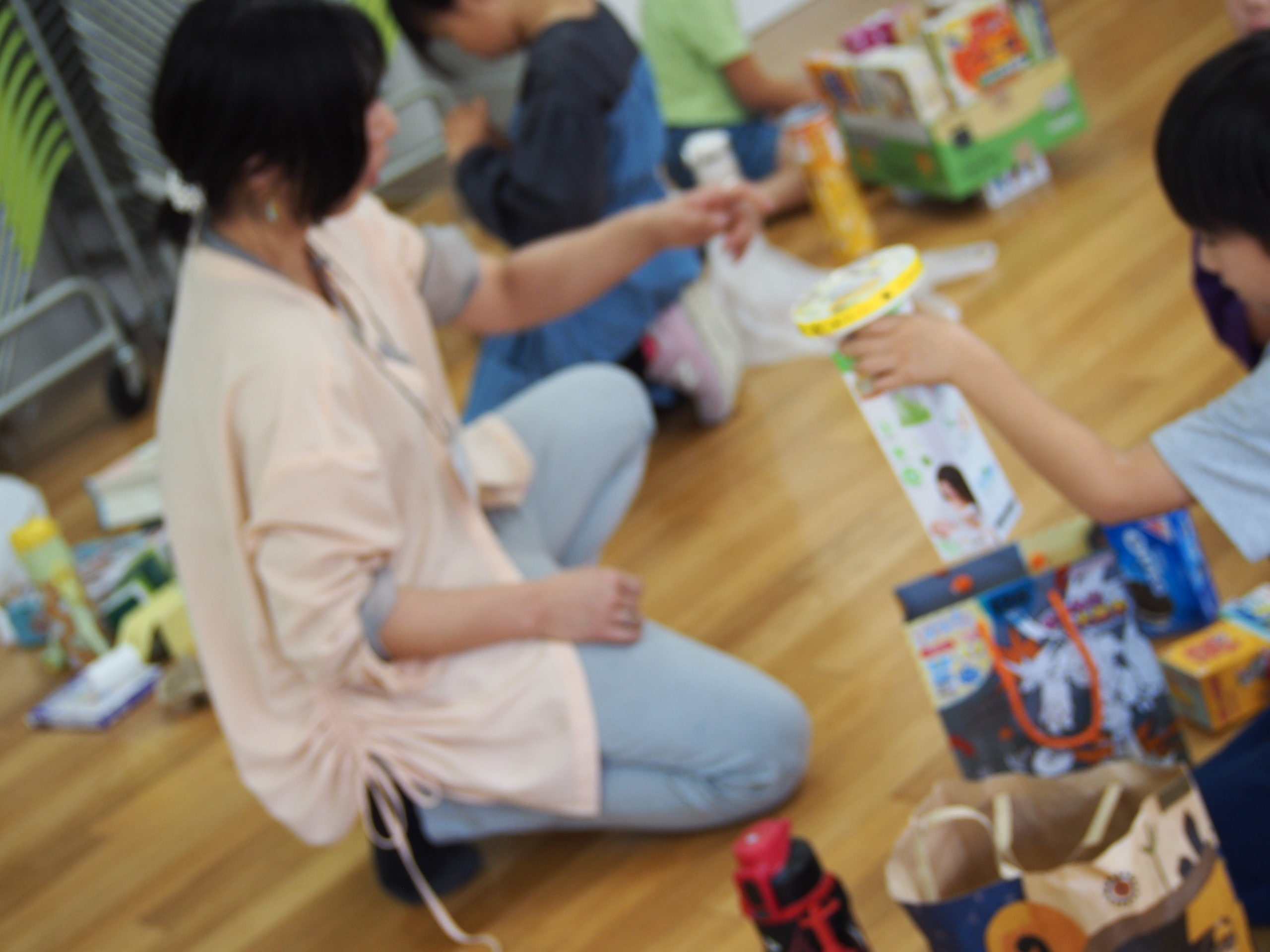 まずは、要らない紙、どのくらい入ってるかな。あきちゃん、見学初参加の木野羊さんと一緒に確認。前回作った青いお屋根と同じものを作る準備をしていると、あっちが一年生の教室呼ばれて行きました。