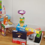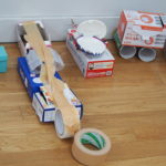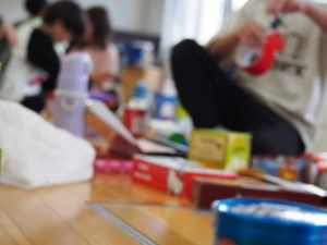 自分の必要な道具だけ持って、家で集めた要らない空き箱を使って、さあ!何を作るんだろう?