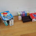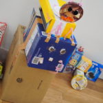 今日の授業は、なんと、家で要らなくなった箱を使って作りたいものを作るというテーマ。