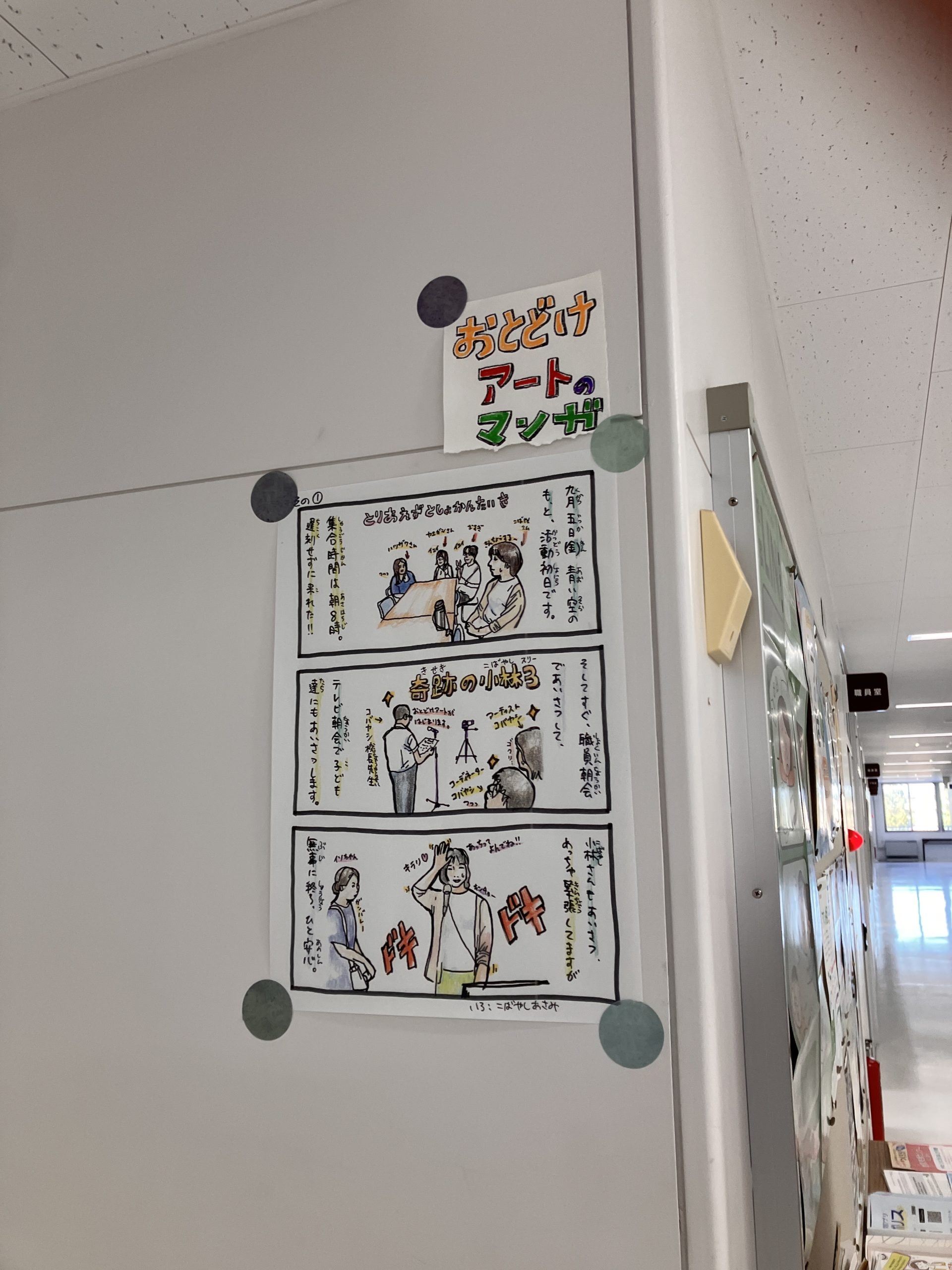 最後にポストと小林氏のおとどけアートの漫画 (勝手に「コバヤシマンガ」と呼ばせて貰っている)が設置されて、この日のおとどけアートは終了。