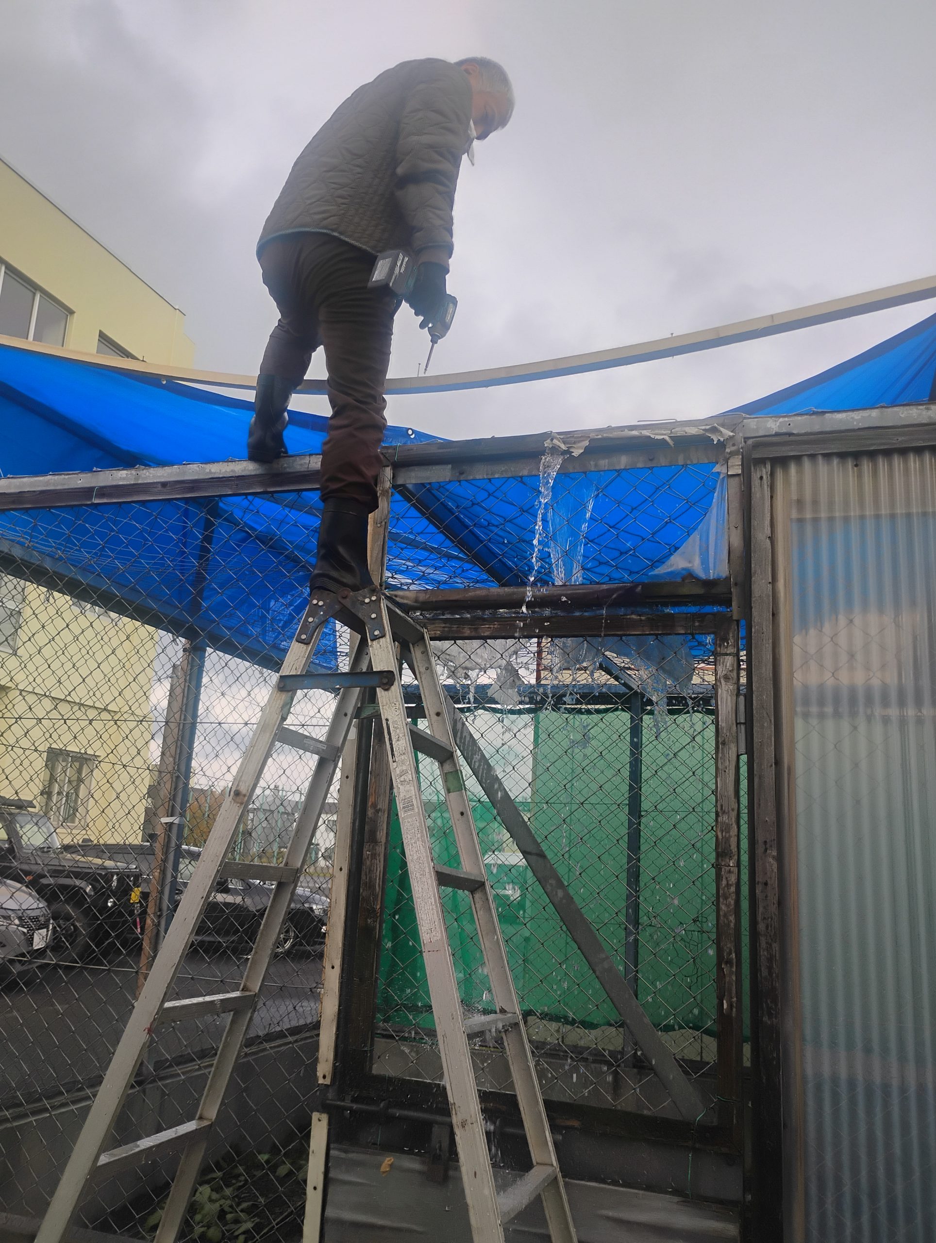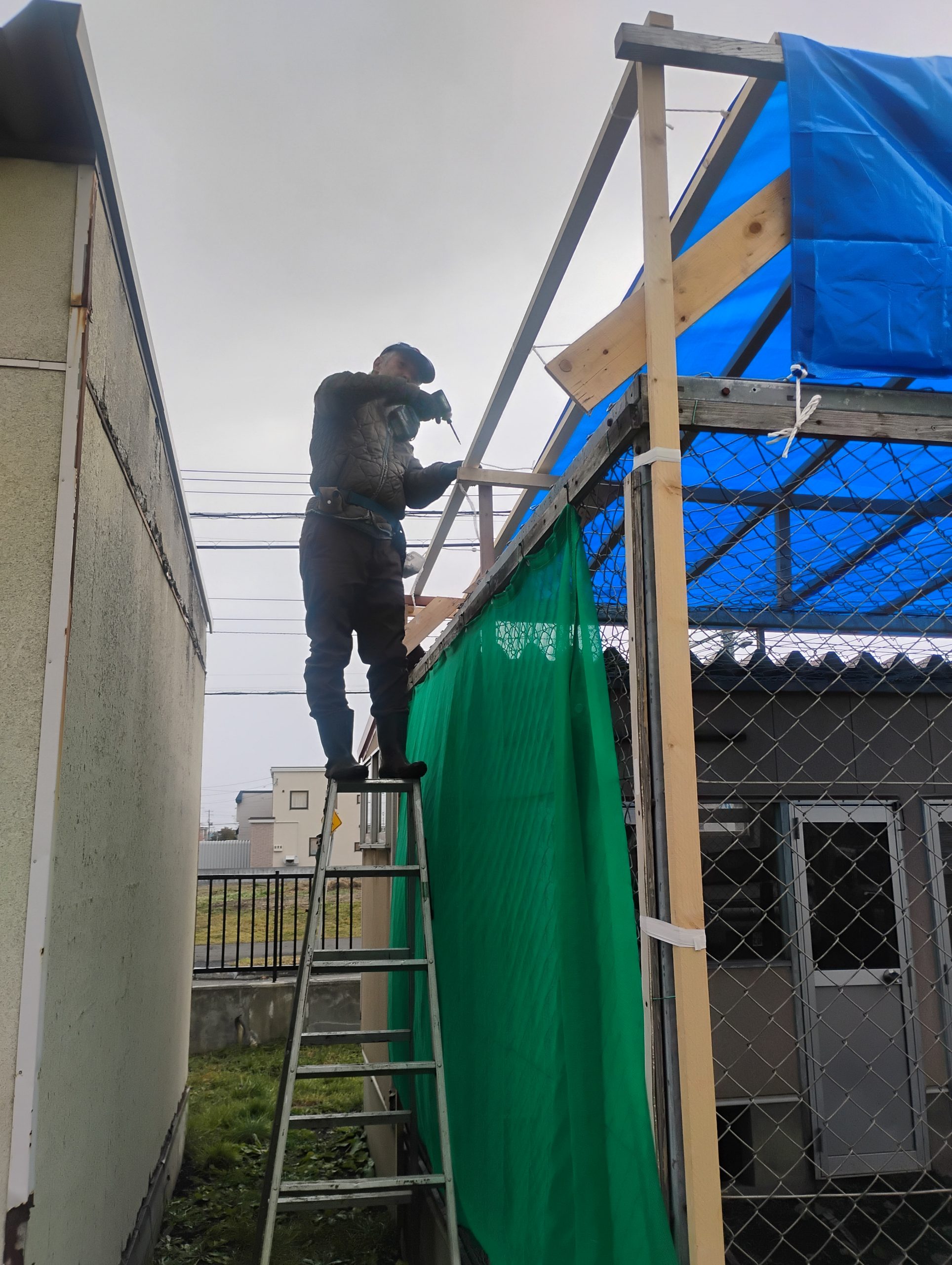 翌朝、コーディネーターとサポーターチームが到着すると既に上ノさんが元うさぎ小屋の補強をしていました。必殺仕事人。