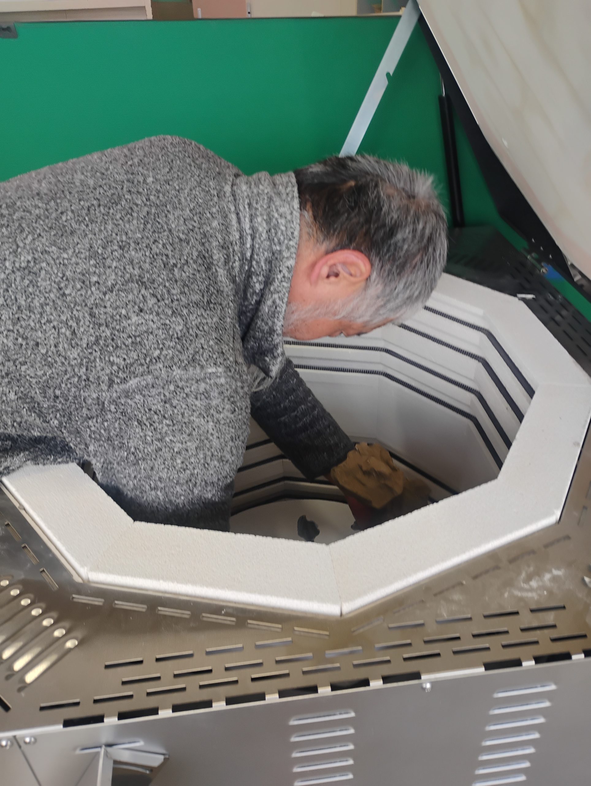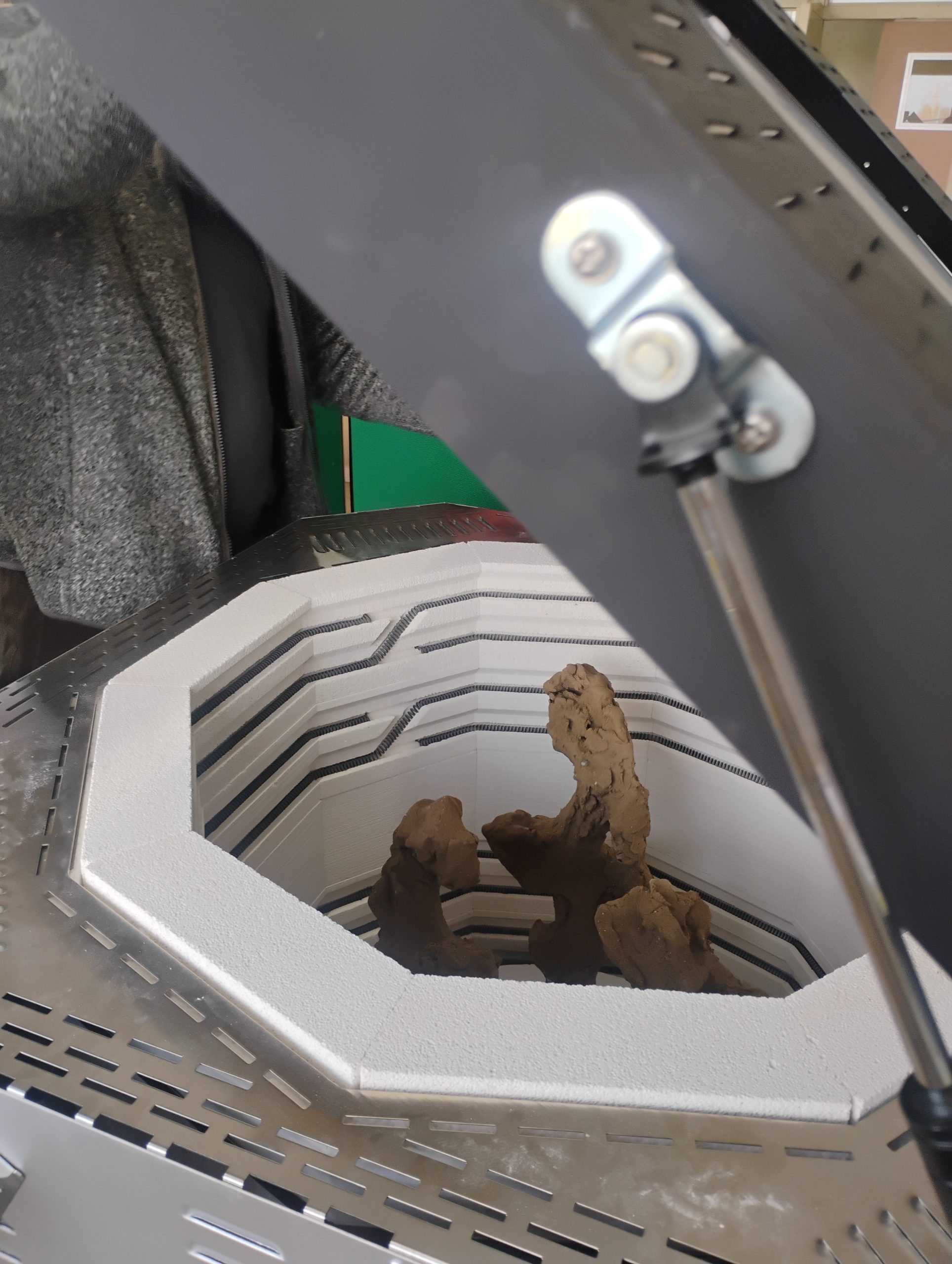 アートクラブで作った作品たちは、野焼き当日までに乾燥が間に合わないため、こうして電気釜で乾燥させます。この乾燥がしっかりされていないと、野焼きをする際に水分が多いことが原因で割れてしまったりするのでこれも地味に大事な工程。