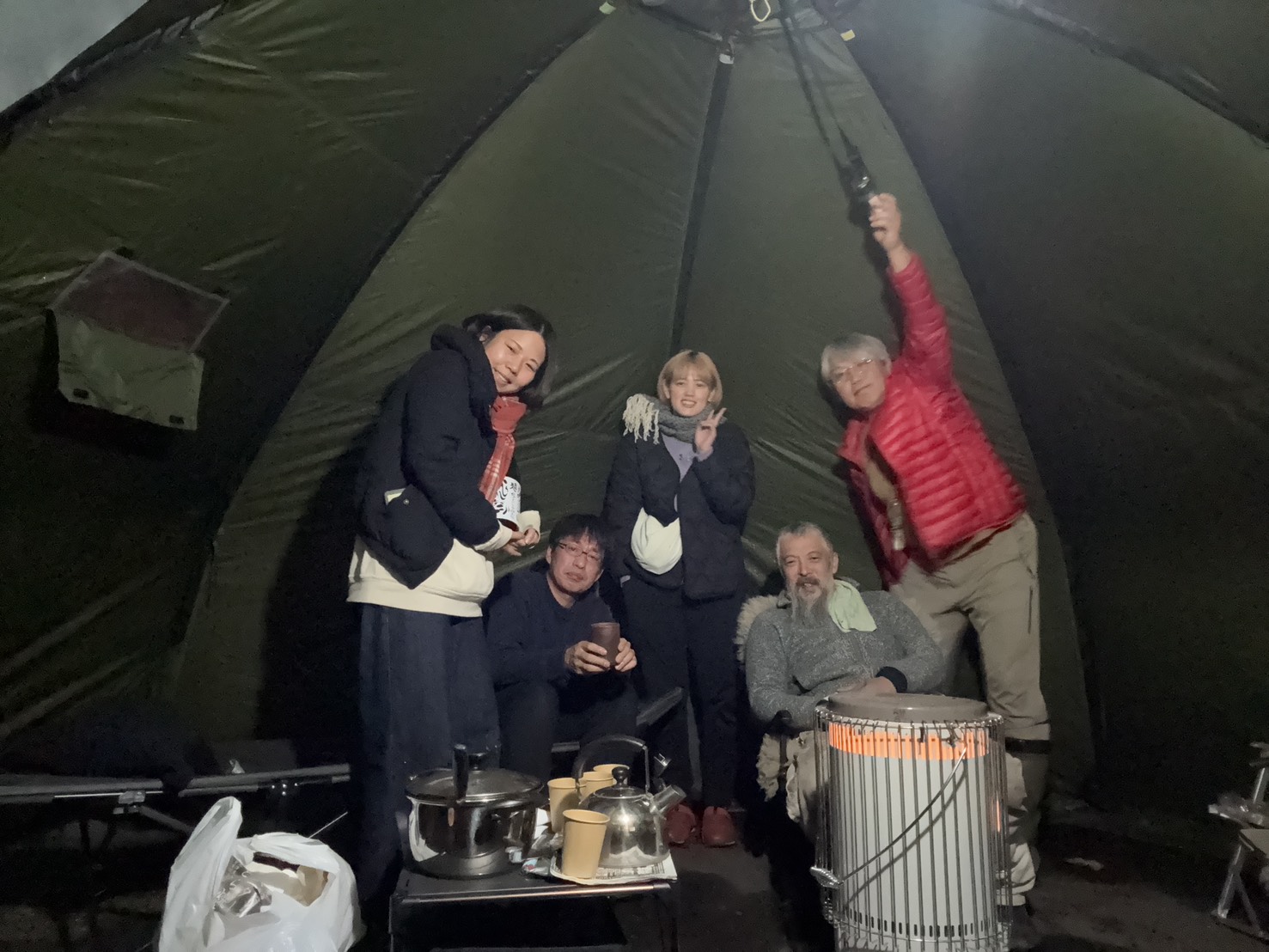 トイレの危機なども乗り越え、ほとんどずっと火のそばにいる師匠。火を見つめながら何を思っているのでしょうか・・・