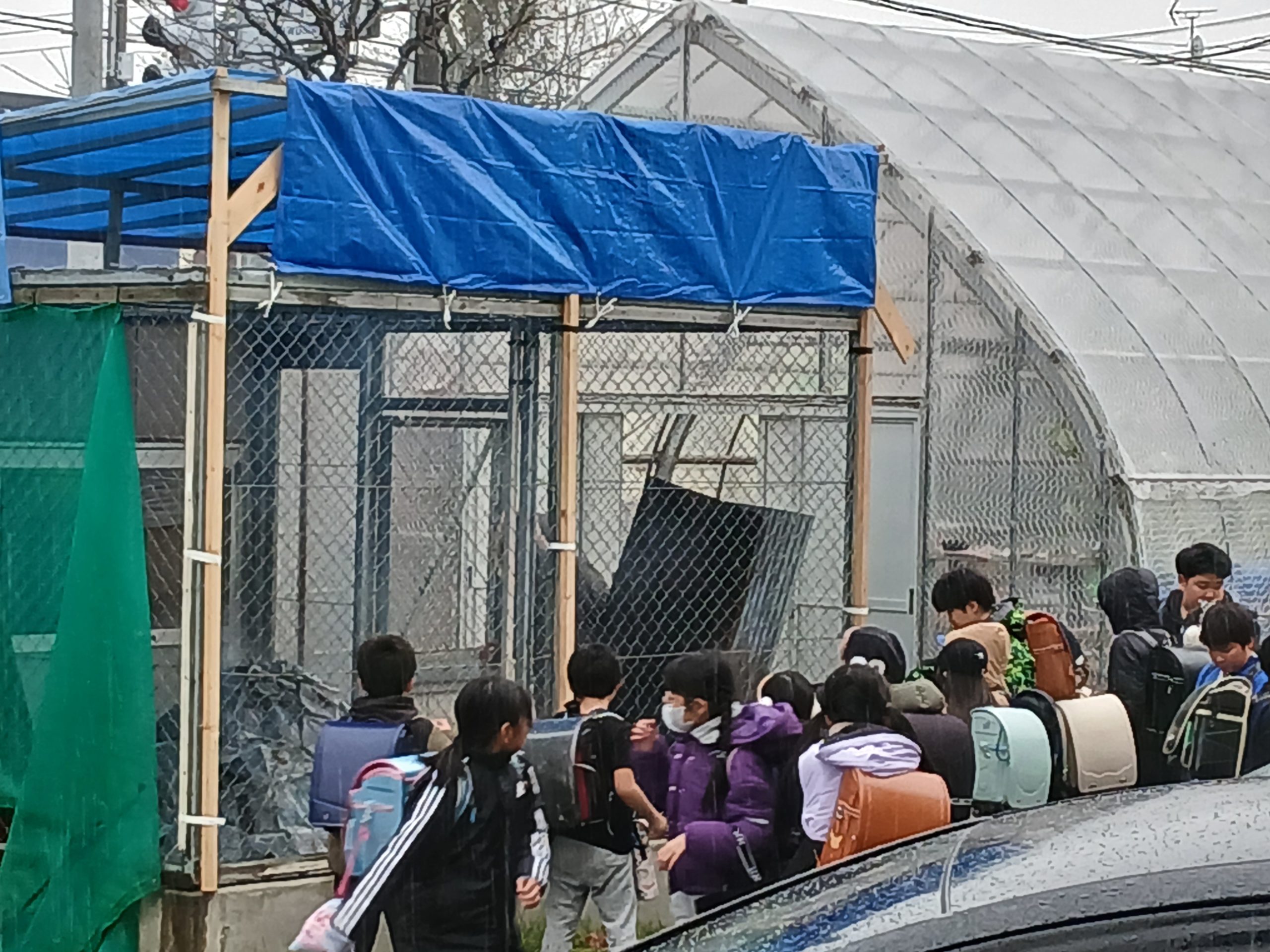 「あれ?うちに近づいてきてる?」「いやあ、でも消防に届出は出してるからまさかね〜」と言い合っている内に、小学校の門に消防車が停まりました。