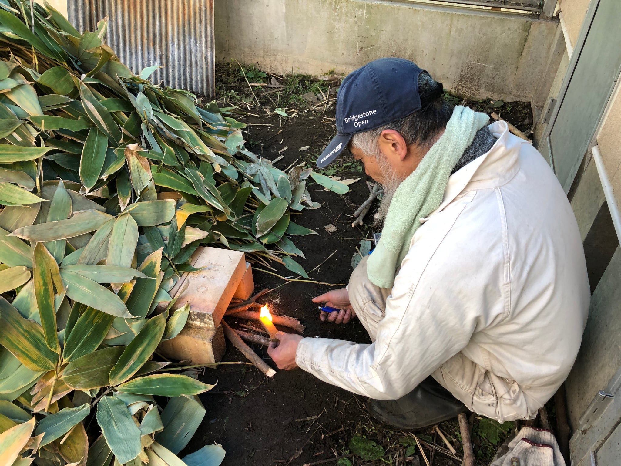 火を焚くためにブロックで囲いを作るなど準備をし、お昼過ぎから火を焚き始めます。