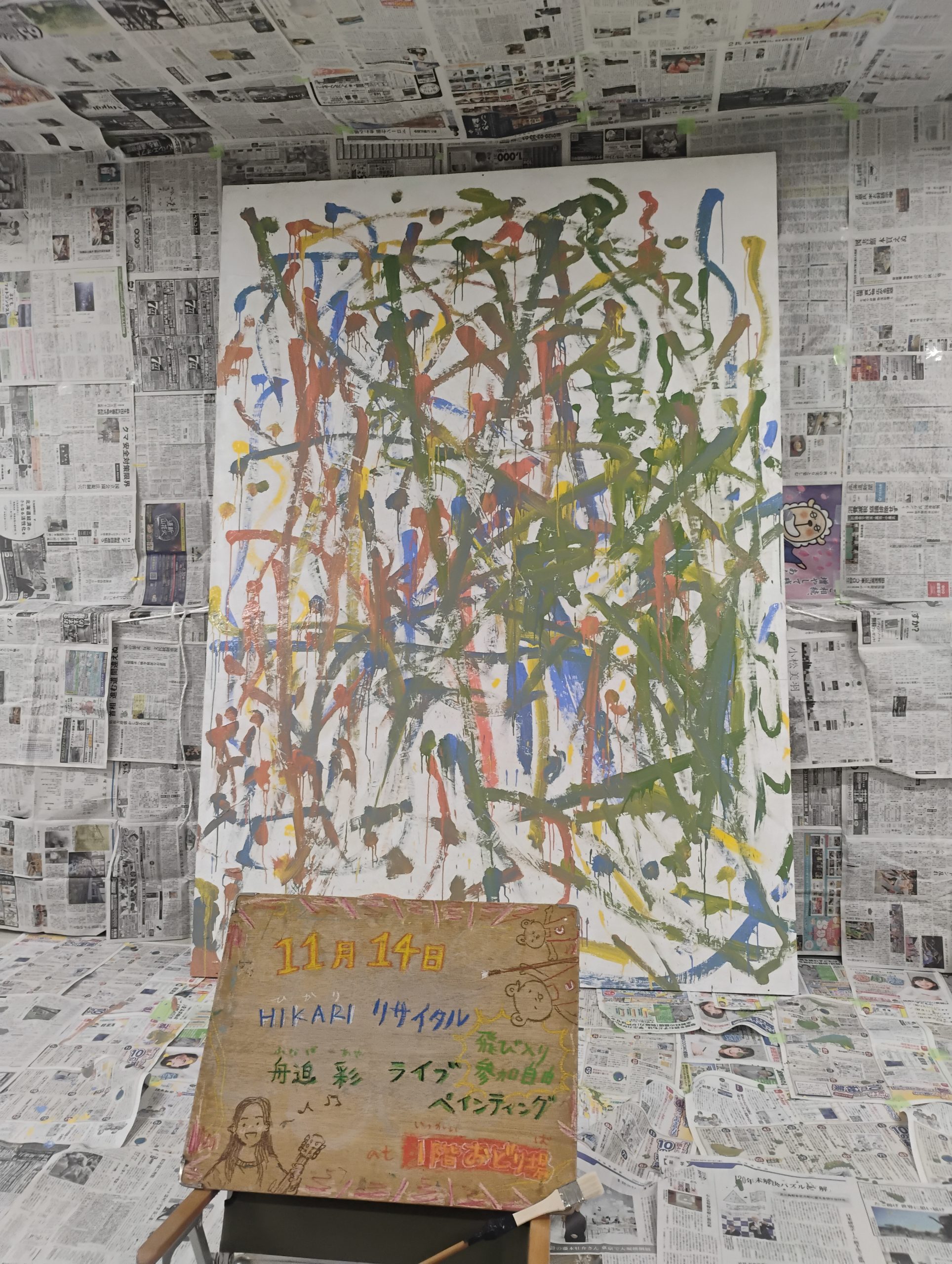 こうして、子どもたちに絵を描いてもらうのが大丈夫そうなことを無事確認。14日は初沢さんと一緒にリサイタル・ペインティングを同時開催することが決定し、どきどきわくわくです。