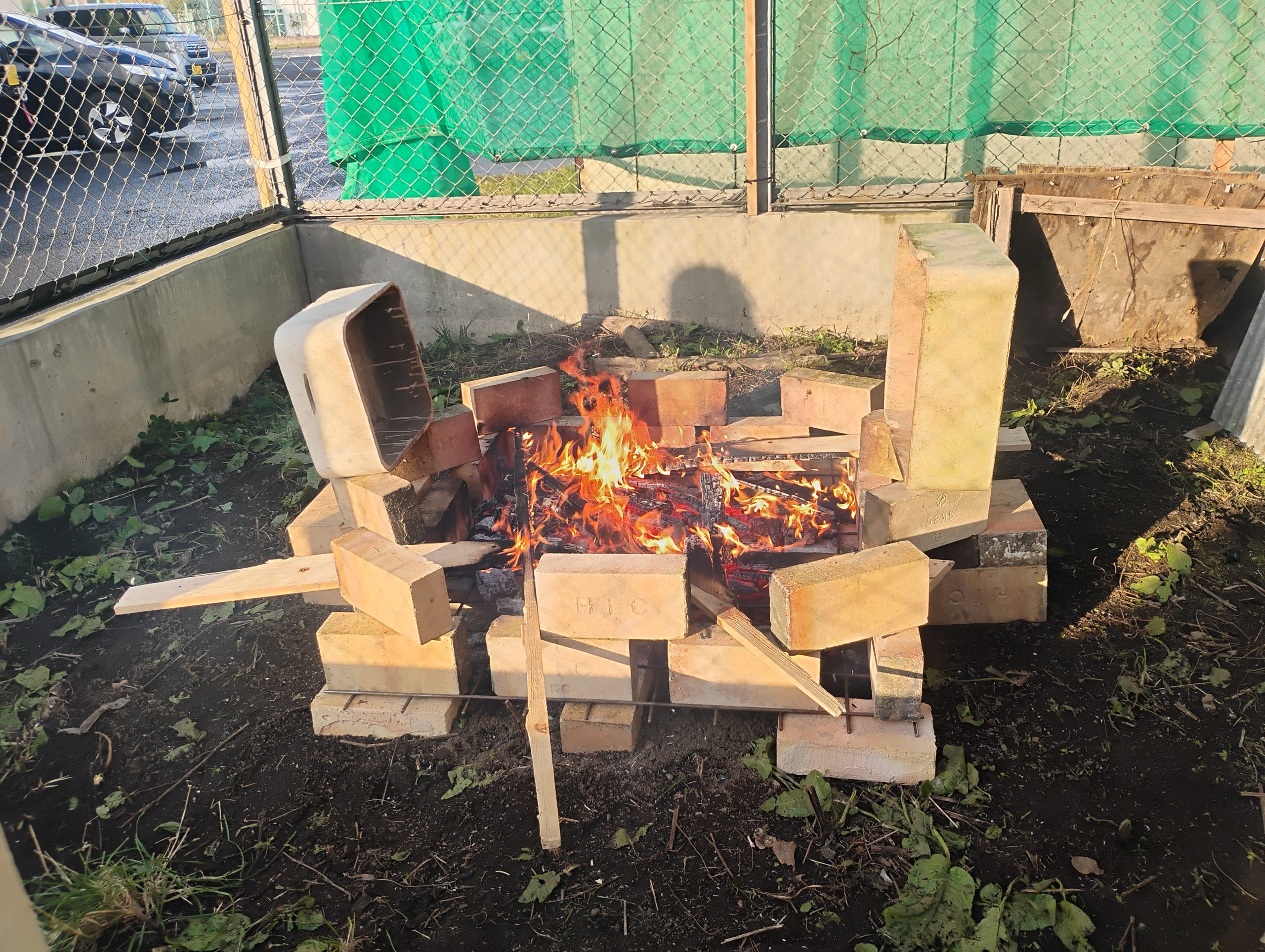13日は夜までしっかりと地面を焼き、明日に備えました。無事にみんなの作品が焼けますように。