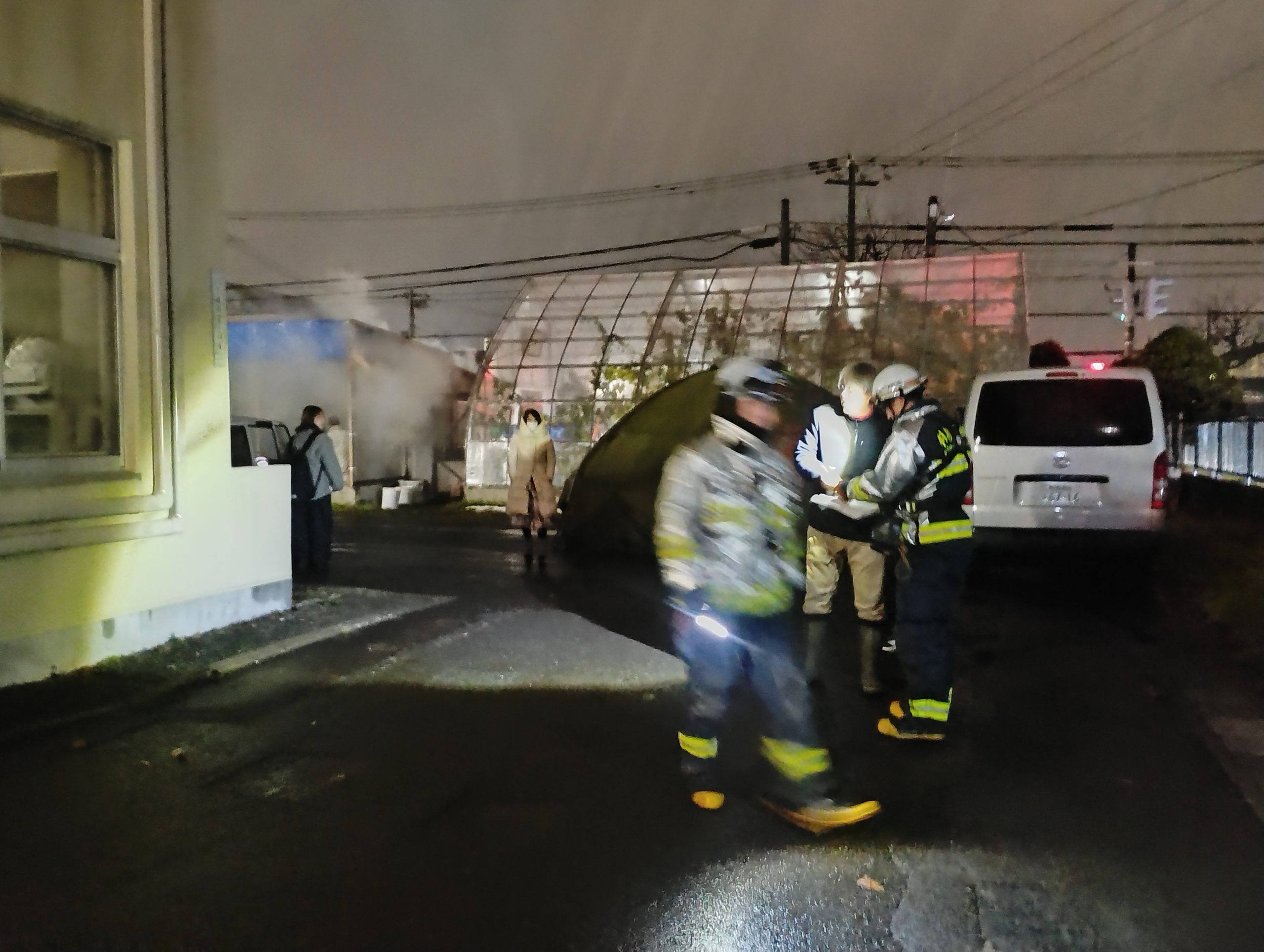 あたたかい飲み物などありがたい差し入れで身体を温めながら、火が少しずつ小さくなり消えるのを見届け・・・