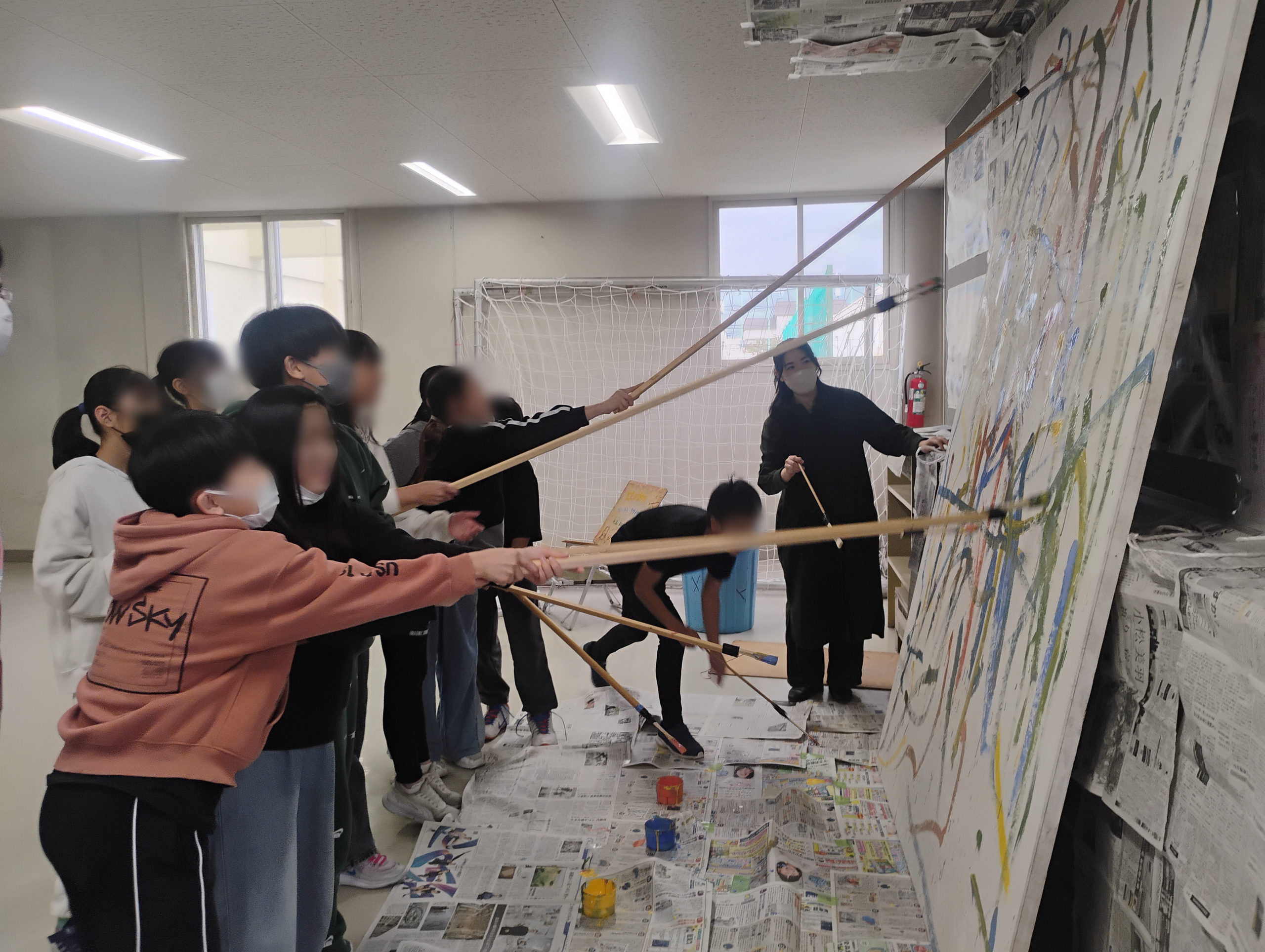 子どもたちのエネルギーってすごいですね。中には現代美術に興味あるという子が、最後ぎりぎりまで描いてくれたり。みんな真剣・夢中になって画面に線を書いていく姿は胸を打たれるものがありました。子どもたちも、この経験から何かしら受け取ってくれていたら嬉しいです。
