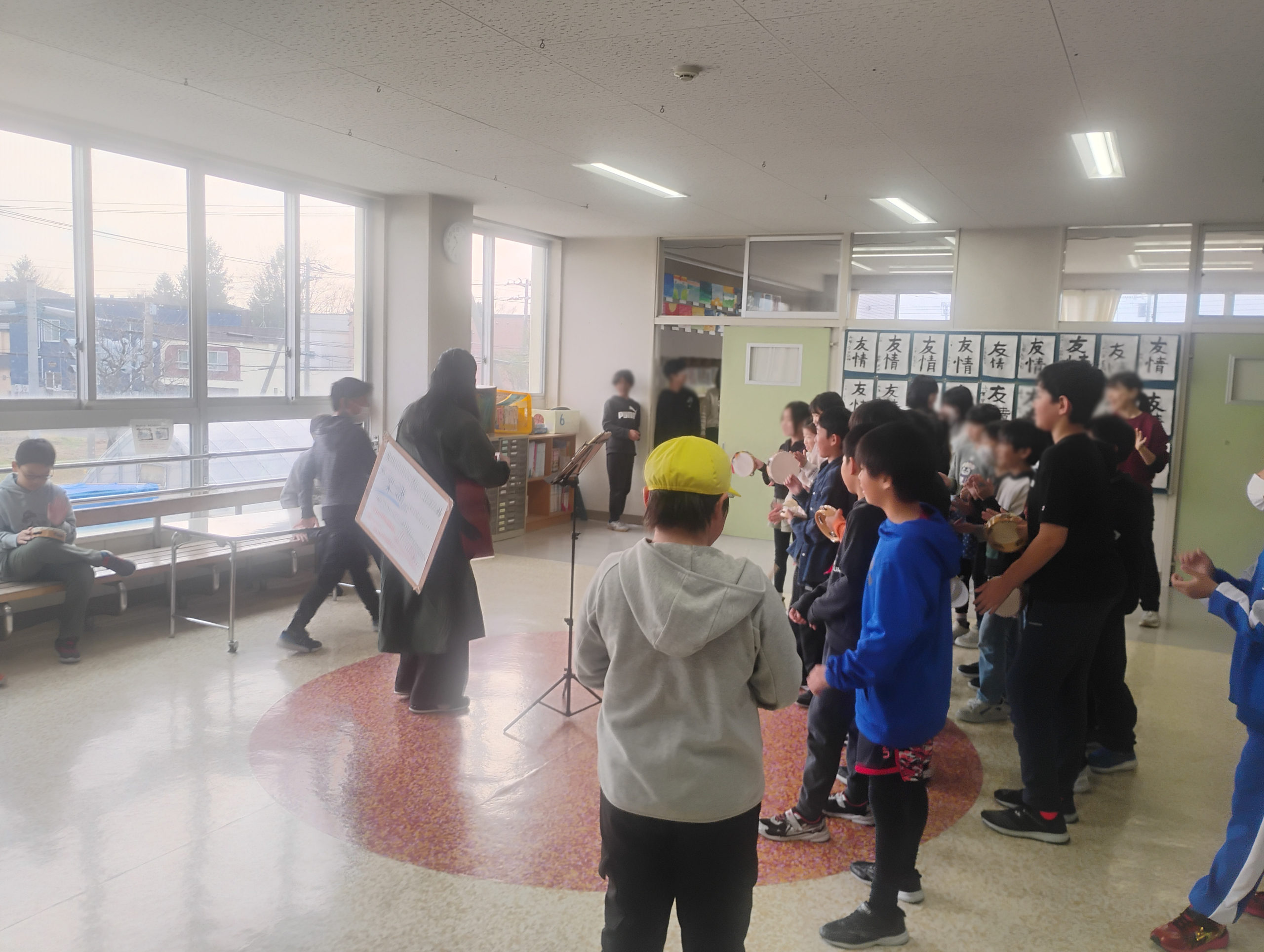 この日、インフルエンザによる学級閉鎖でいない学年も多い中、こんなにも生徒が集まるとは。子どもたちも初沢さんの曲を覚えていて、一緒にうたったり。先生も楽しそうに眺めていらしゃったり、素敵な空間が広がります。初沢さんの音楽の力はすごいなと、改めて感じる一面でした。