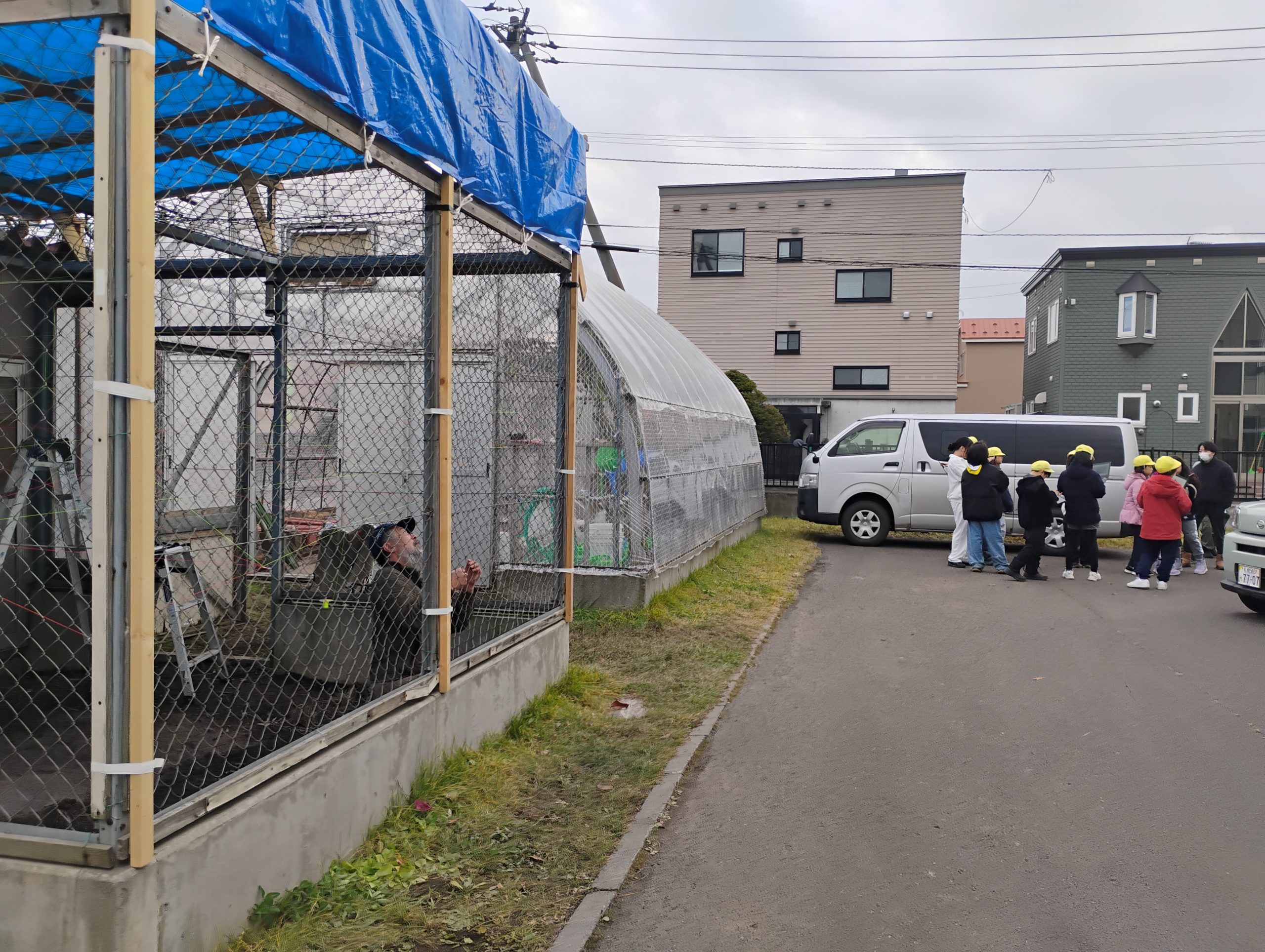 だんだんと編み広がっていく元うさぎ小屋。ワクワクします。