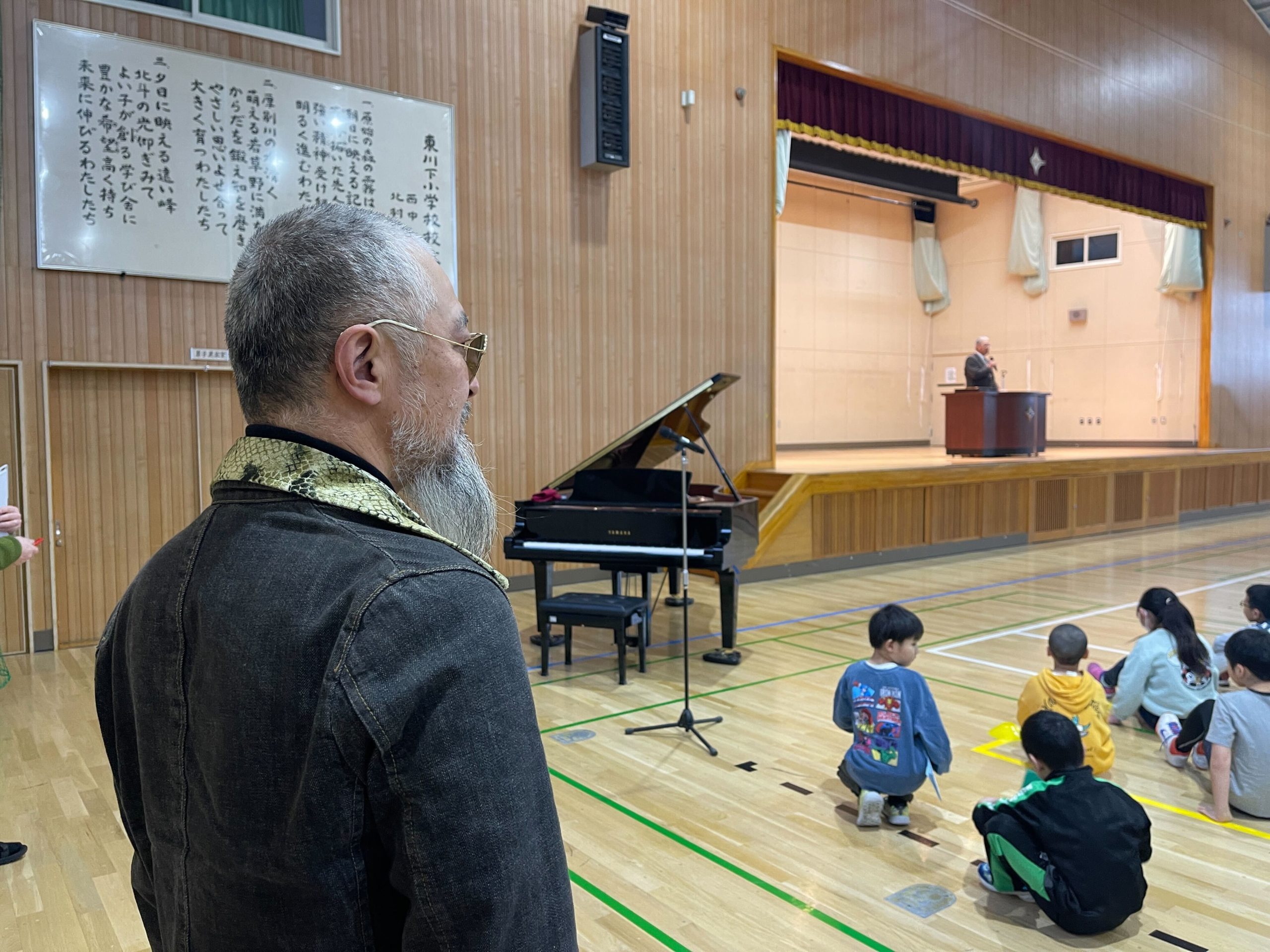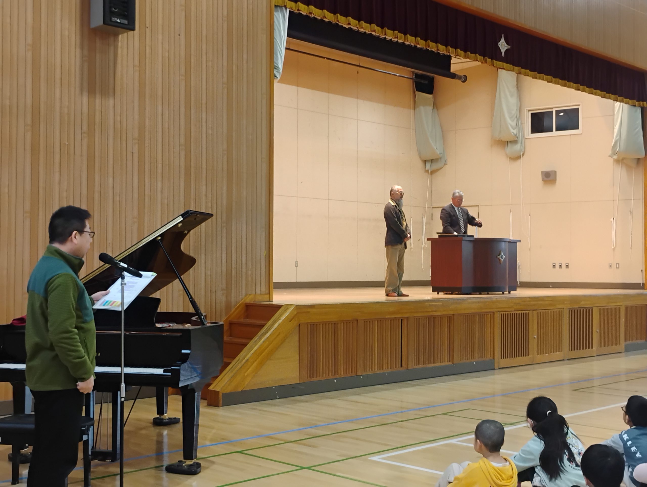 その後、終業式を端から見守りました。体育館に集まる子どもたちのざわめきや、いつもよりきちんとした空気が、節目の日らしい時間をつくっていました。