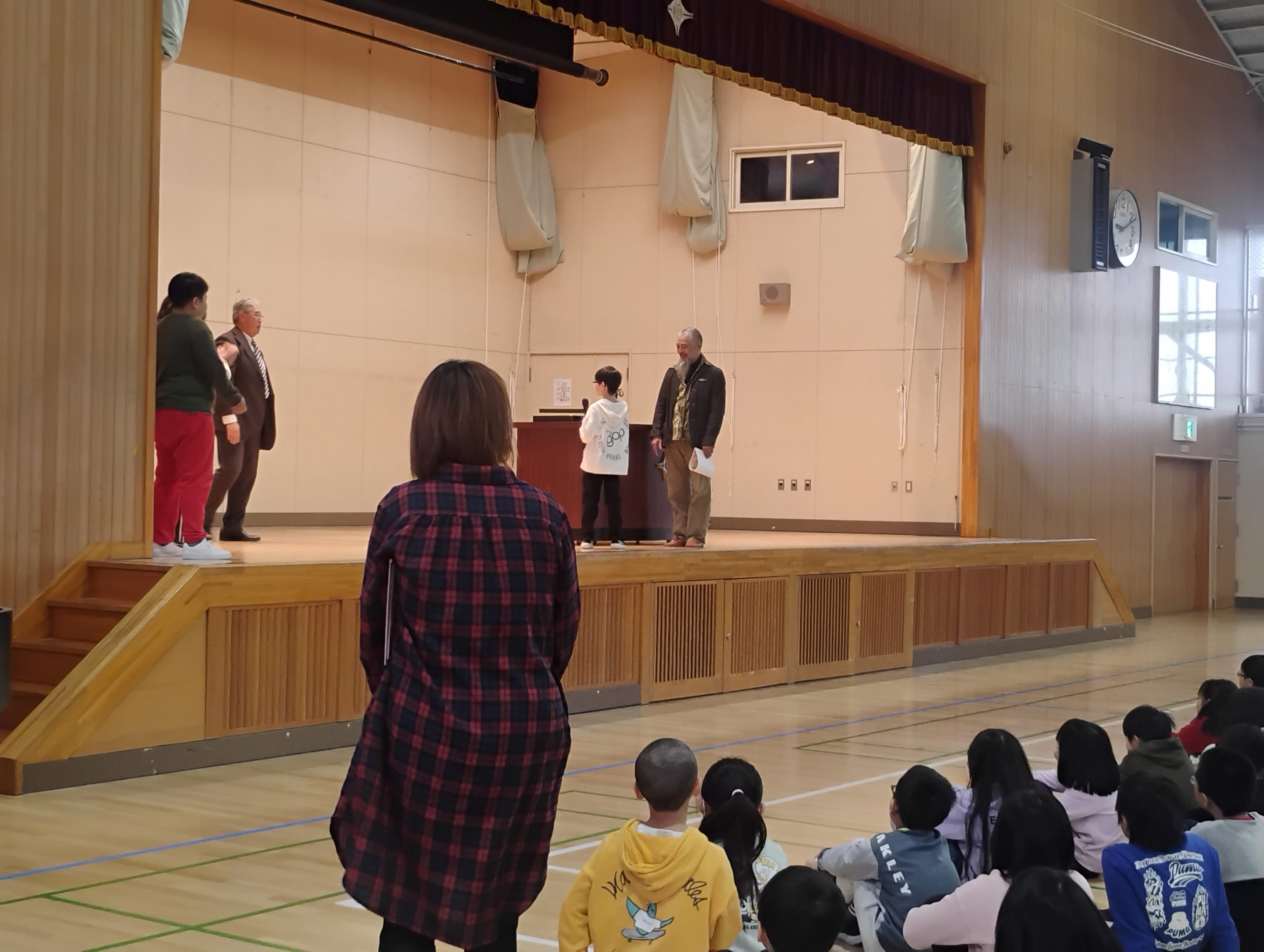 上ノさんの言葉、校長先生からの退学証書授与につづいて、子どもたちからも上ノさんへメッセージを送る時間がありました。校長先生が「上ノさんにメッセージがある人〜」と呼びかけると、すっと自然に手を挙げる子どもたち。