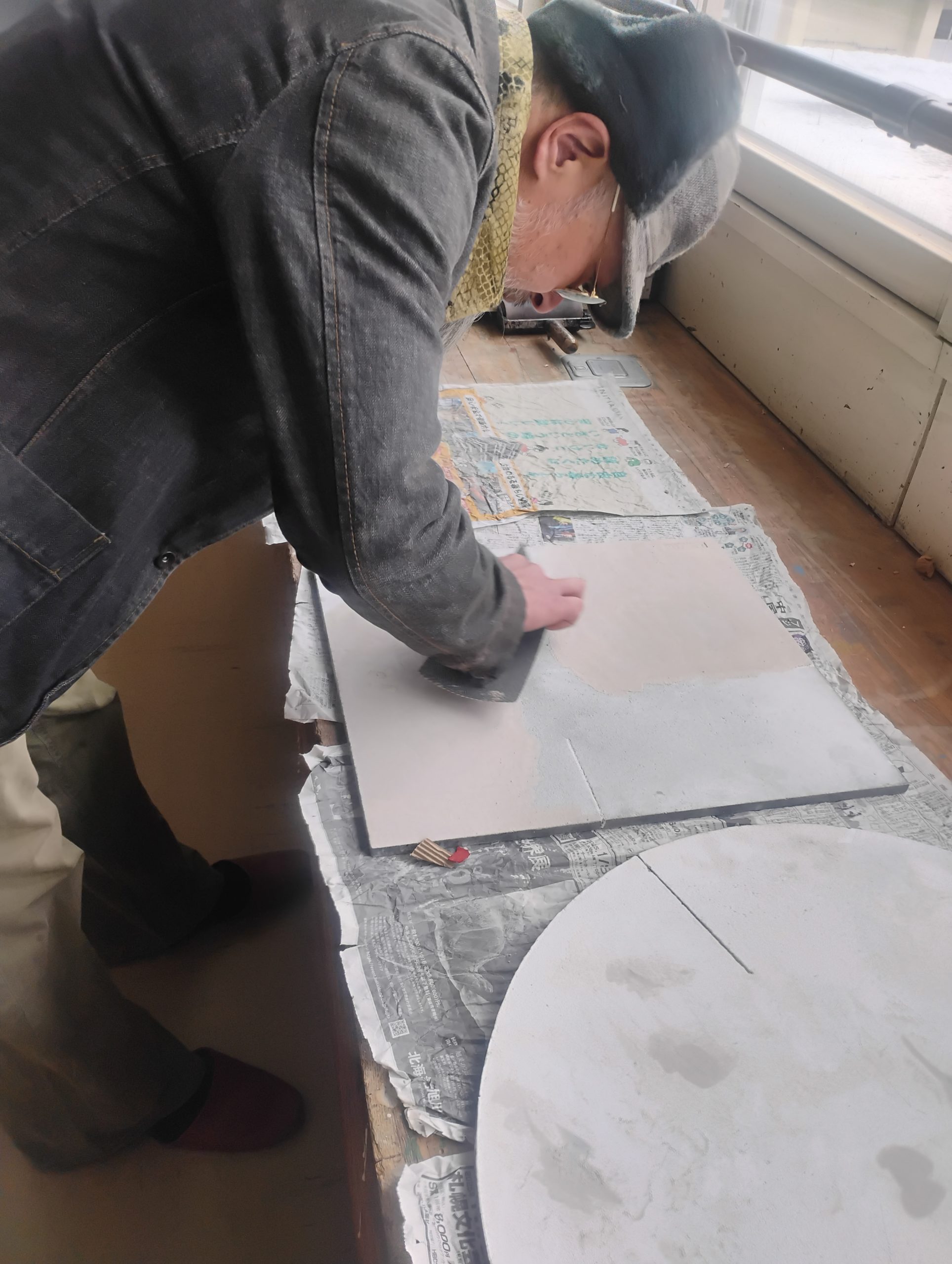 その後は、乾かしていた窯の棚板にやすりをかけたり、展示のキャプションを貼ったりと、やり残していた最後の作業を行いました。