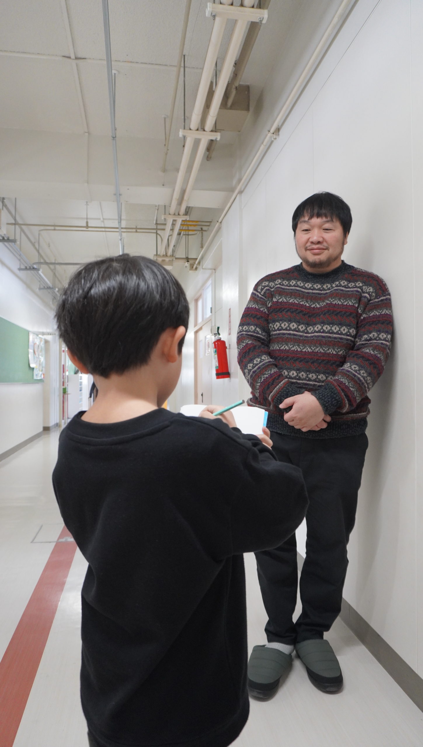 給食を食べ終わった際、一人クールそうにしていた子が黒田さんに急に好きな食べ物を訊いてきたそうです。これまでリサーチをしていた側の黒田さんが、リサーチをされている。さりげない立場の転換を面白く感じたりしました。舟迫の去り際にもハイタッチをしてくれる子が居り、パワーに満ち満ちているのを最後まで感じました。