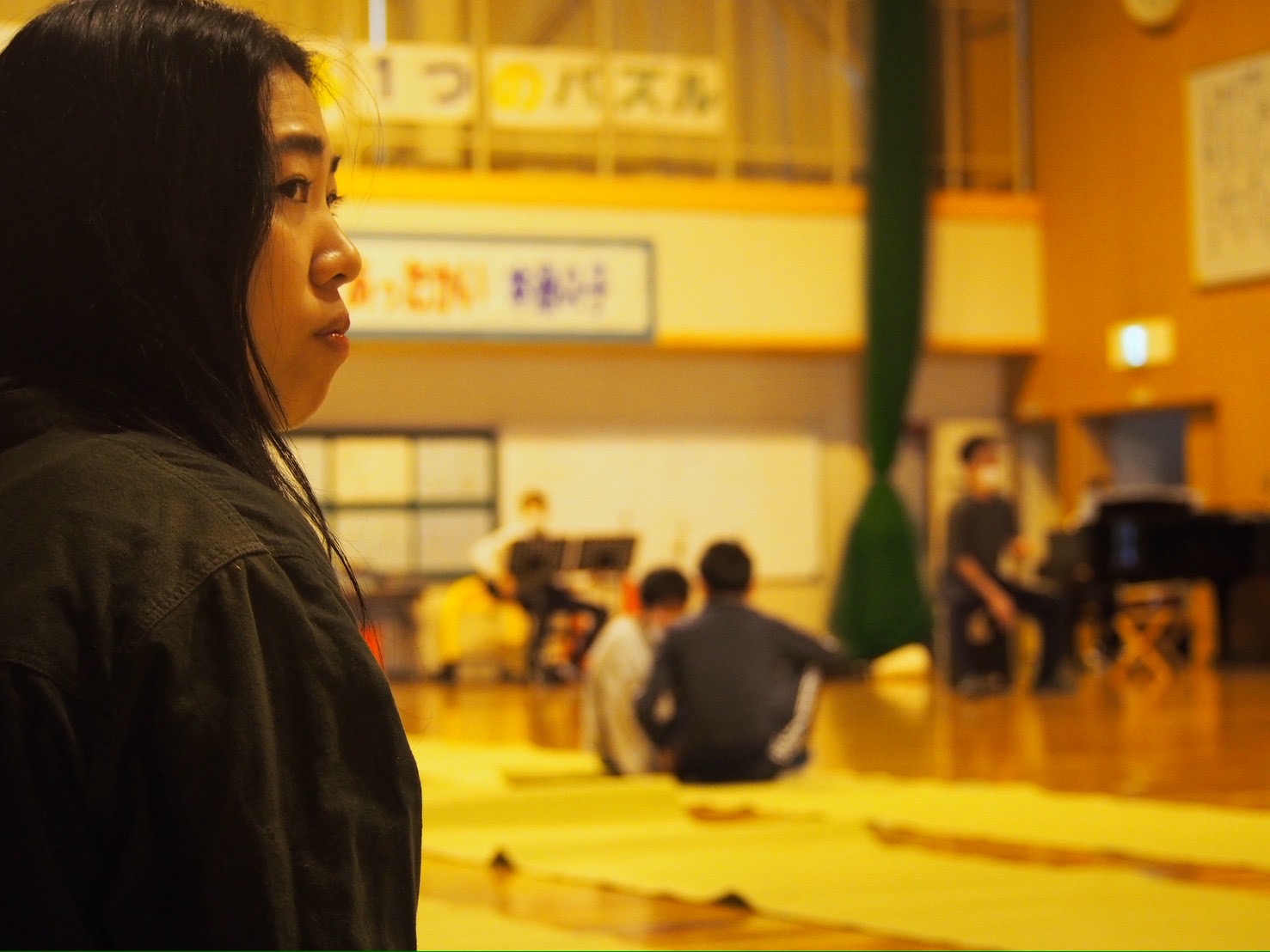 演奏中の子どもたちにお誘いをもらい、チームで分かれてベーさんとひかりさんは鑑賞する。