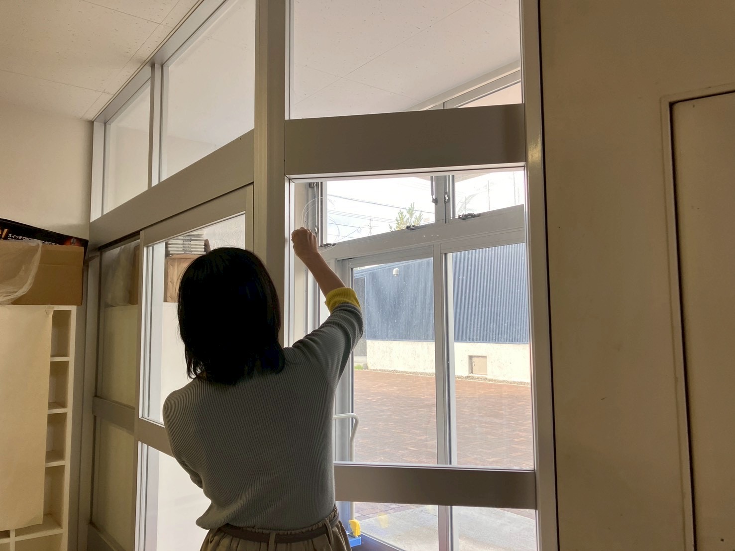 当日、保護者の方たちはここから入場して、多目的室が待合、廊下を通って体育館へ、らしい。