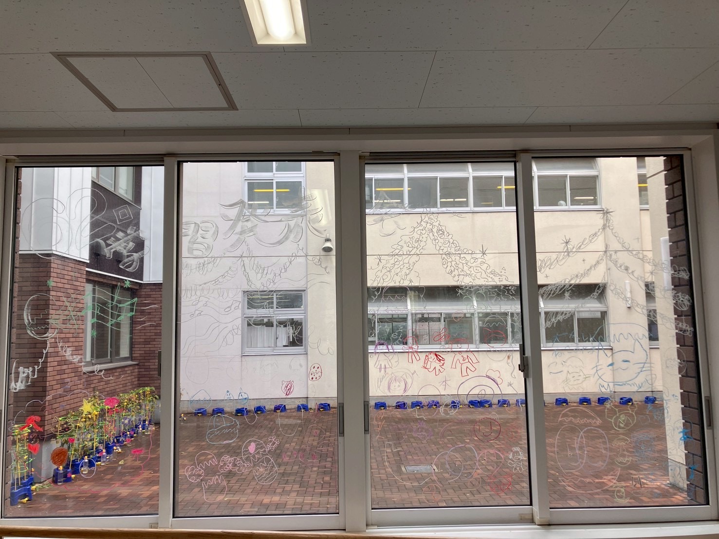 一方、あっちはキットパスを持って、発表会に花を添えるために、保護者入場予定の裏玄関と多目的室へ。