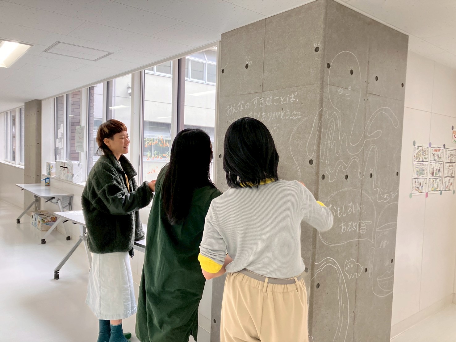チームコバヤシの「笑顔の三すくみ」はもちろん、「壁に描いてます」「濡れた雑巾で消えます」「どんどんやっちゃってください」の、のんびりなひと時。