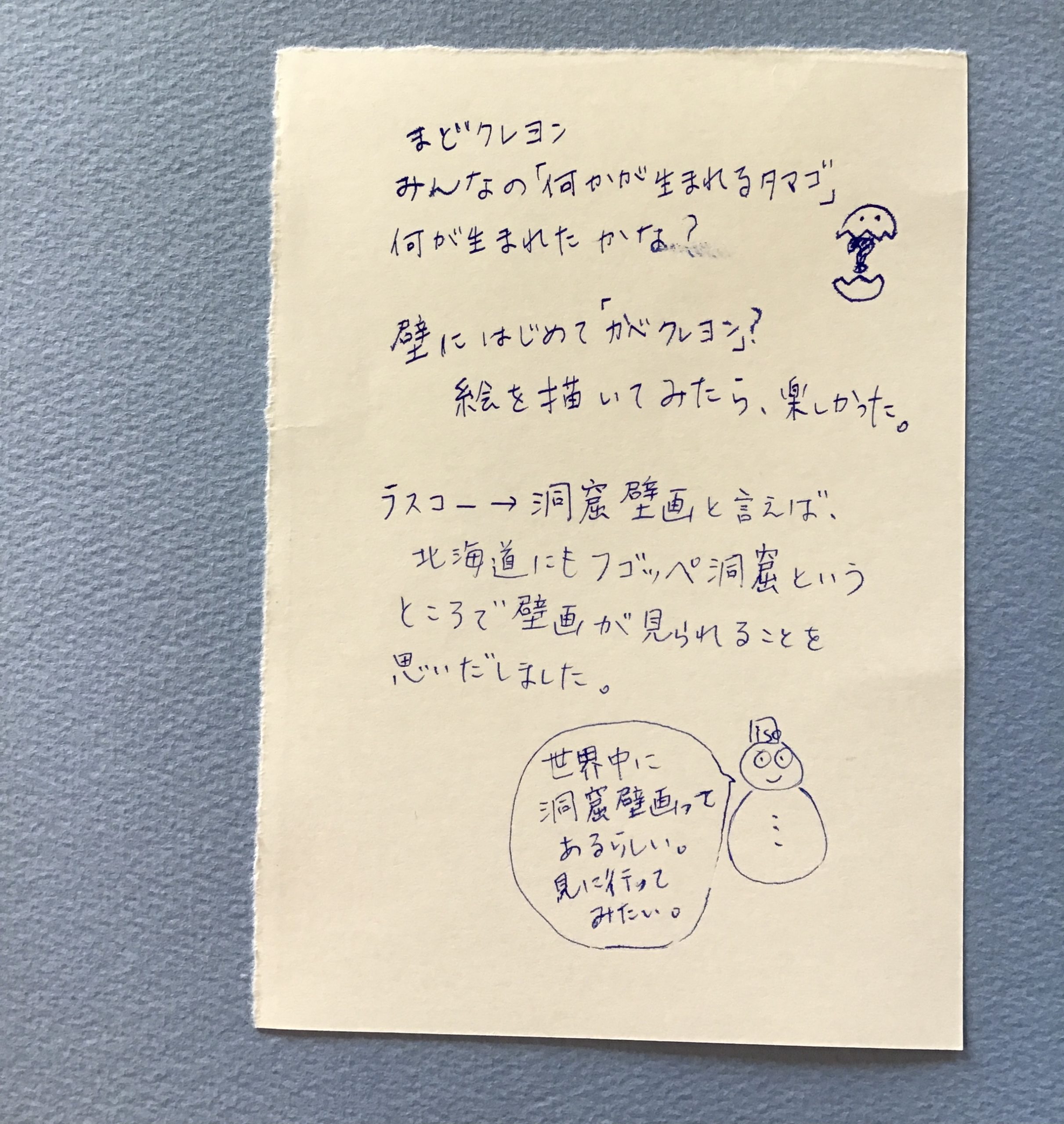 みんな卵を描いたり、生まれたての何かを描いてくれたり…