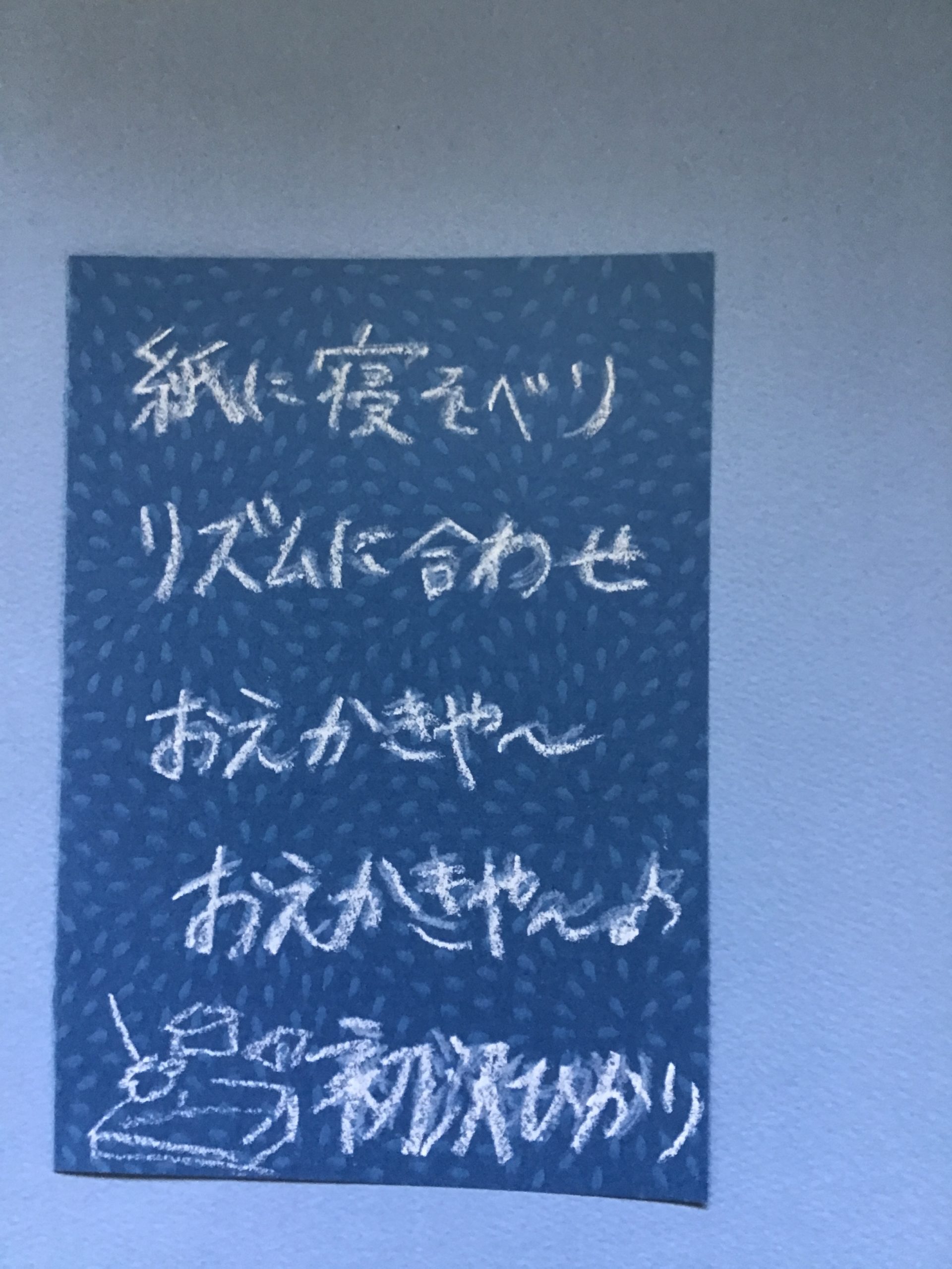 ポンポンスポンジ画、ちょっとだけステンシルみたい。ステンシルは、日本語ではカッパ刷りとか、カッパ版というらしい。