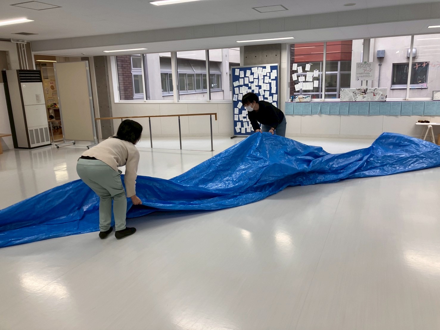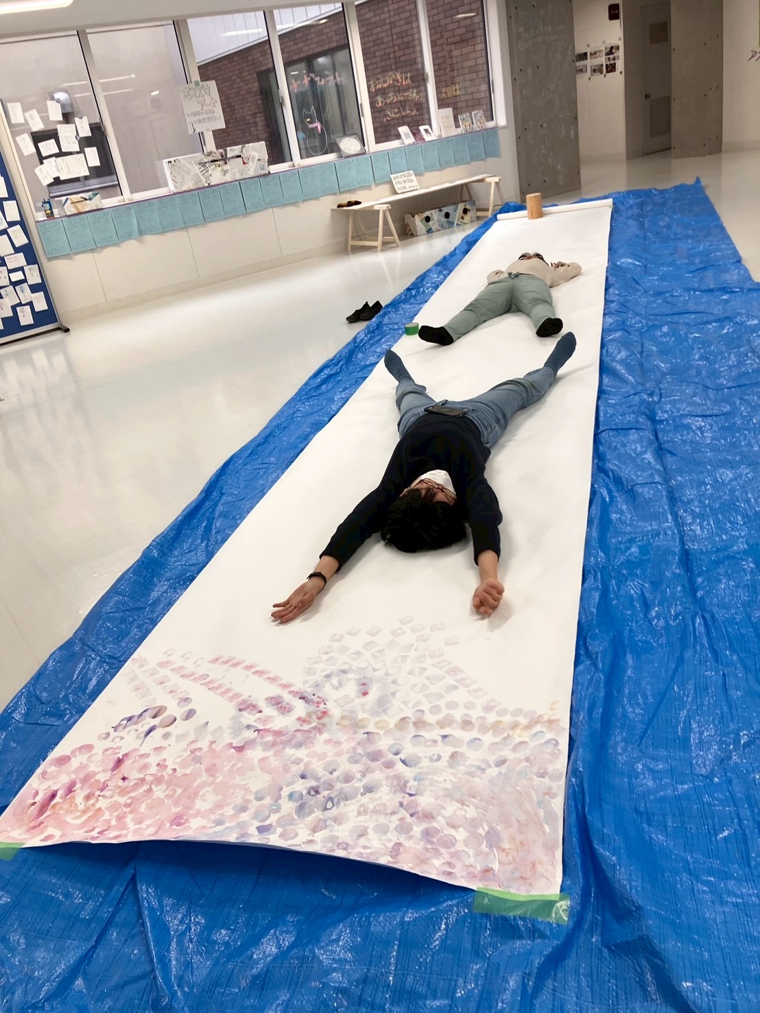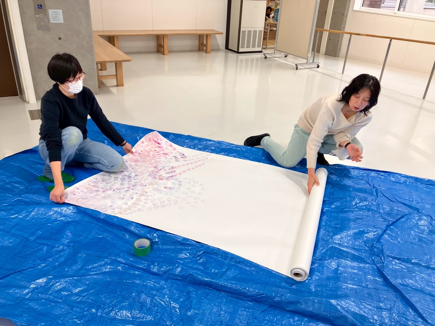 まずはブルーシートを敷いて、その上に巻紙を敷く。