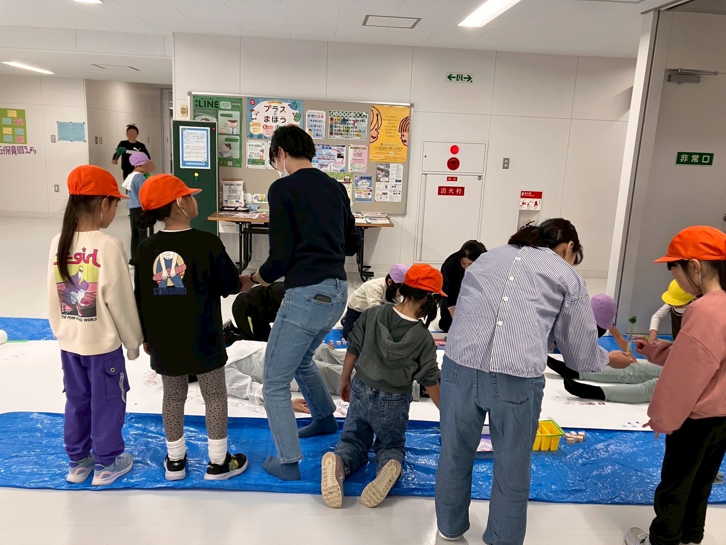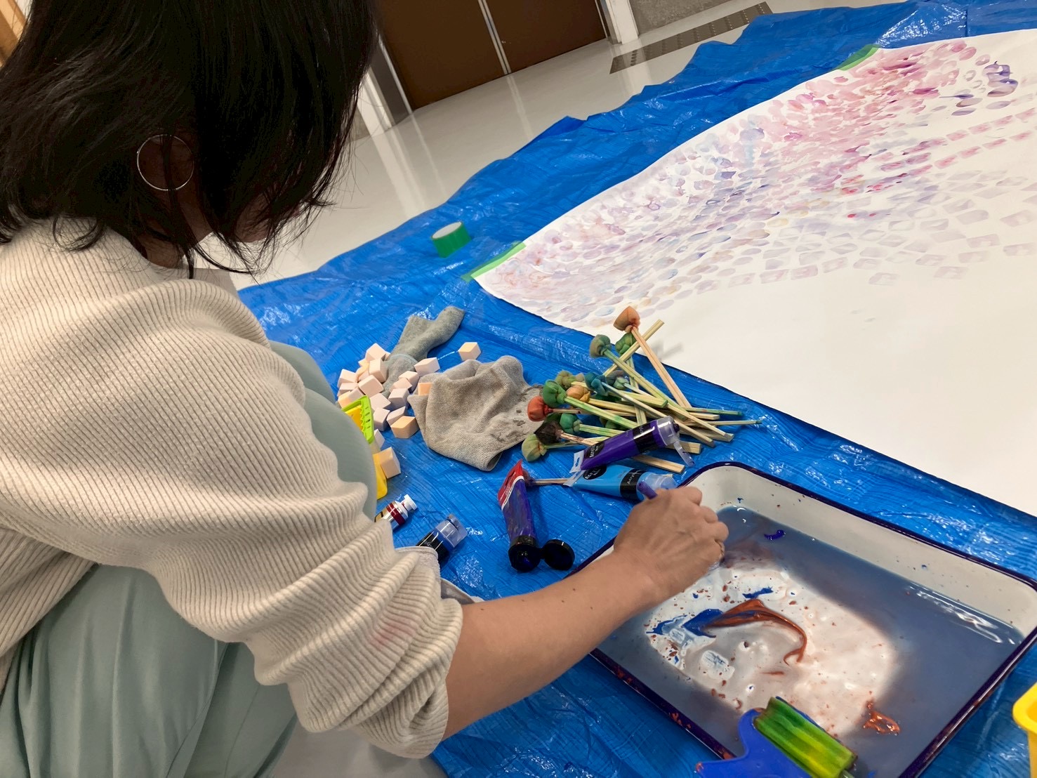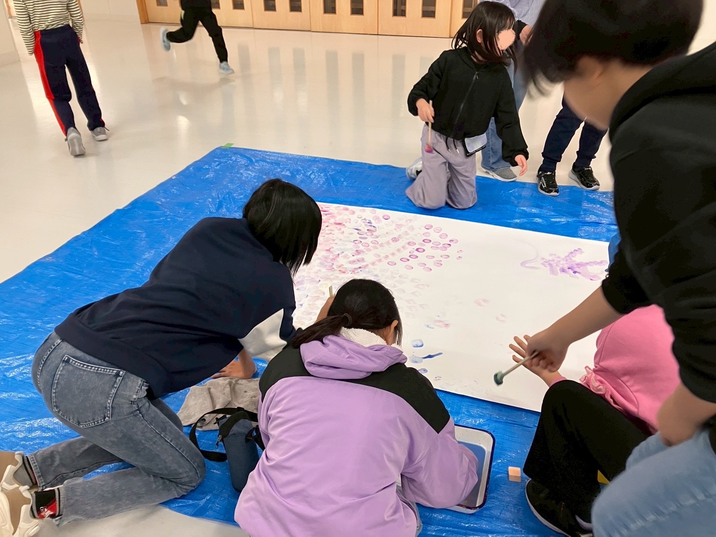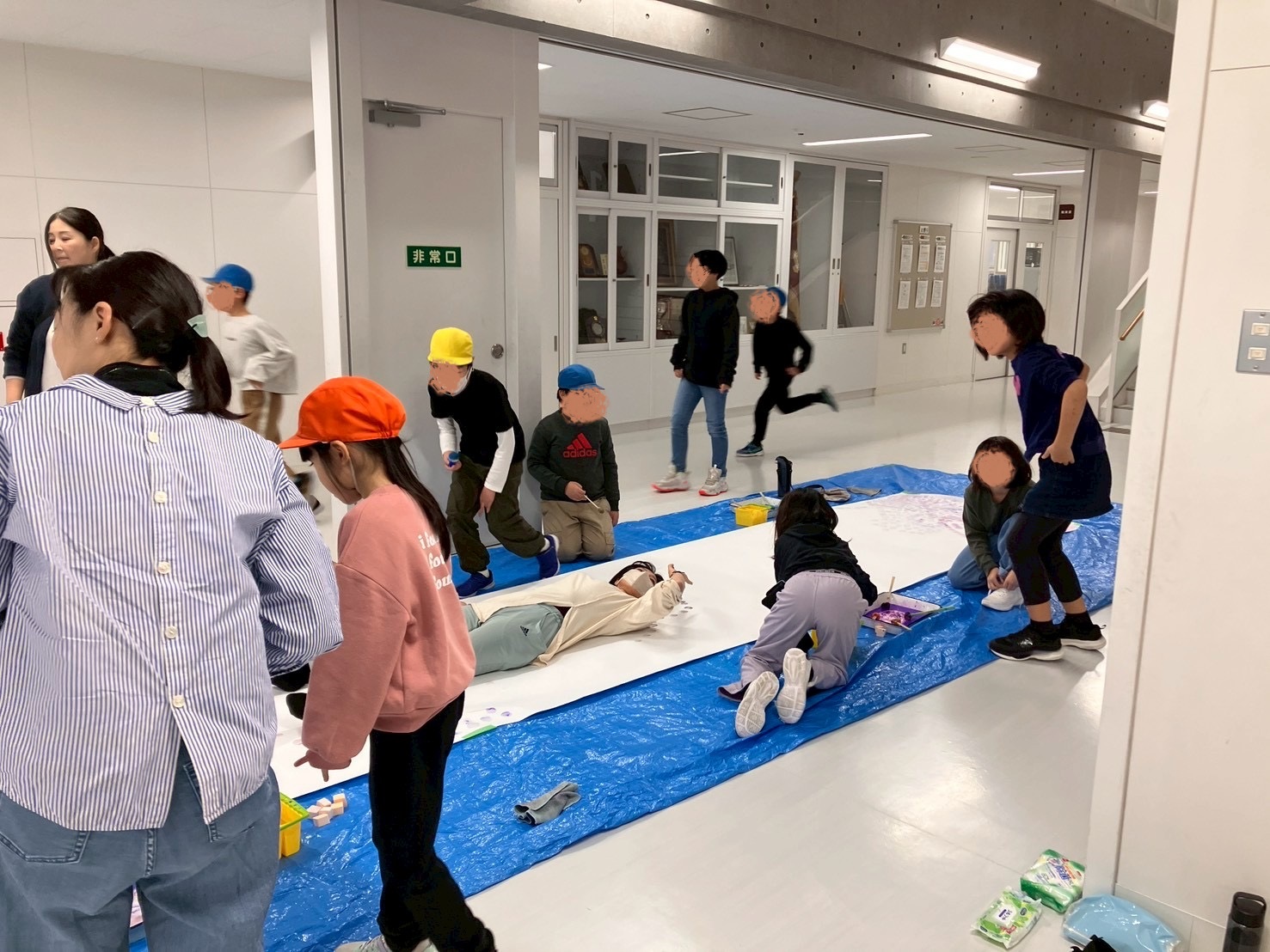 まずはブルーシートを敷いて、その上に巻紙を敷く。