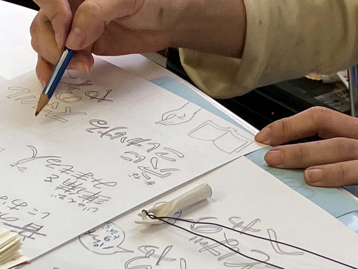 小さなものたちがひっそりと隠れている場所のヒントの言葉を、あっちが考えて、カプセルに詰める。ヒントの書かれた「指示書」をガチャで引いたら、出たその場所がどこか謎解きして探す仕掛け。どんな言葉のヒントになっているのか、ほんの少しだけ見せてくれた。あっちが隠した場所はどこか知らないので、ガチャの日に一緒にどこか探してみようかな。