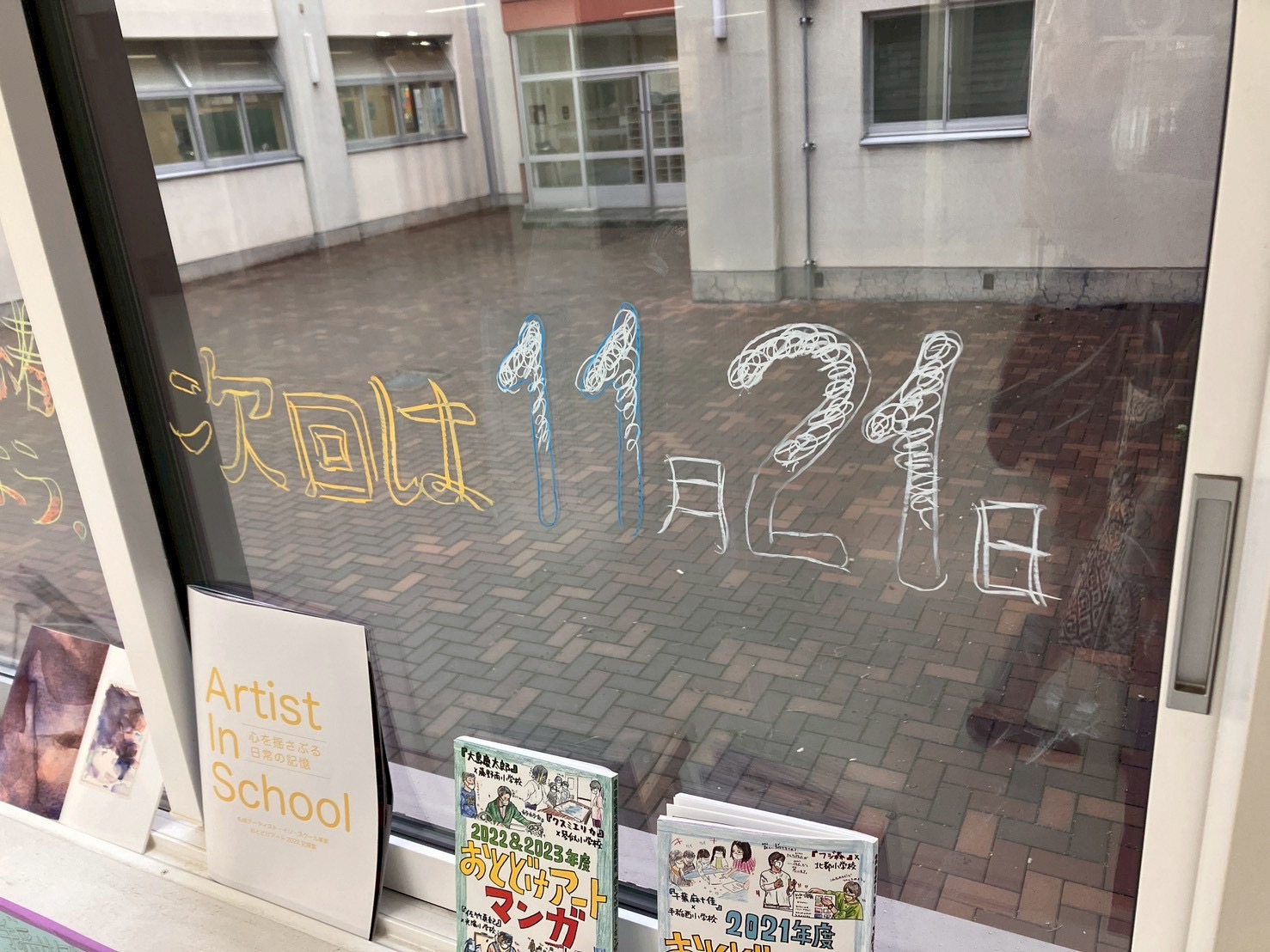 こっそりと子どもたちの教室の前を通って…