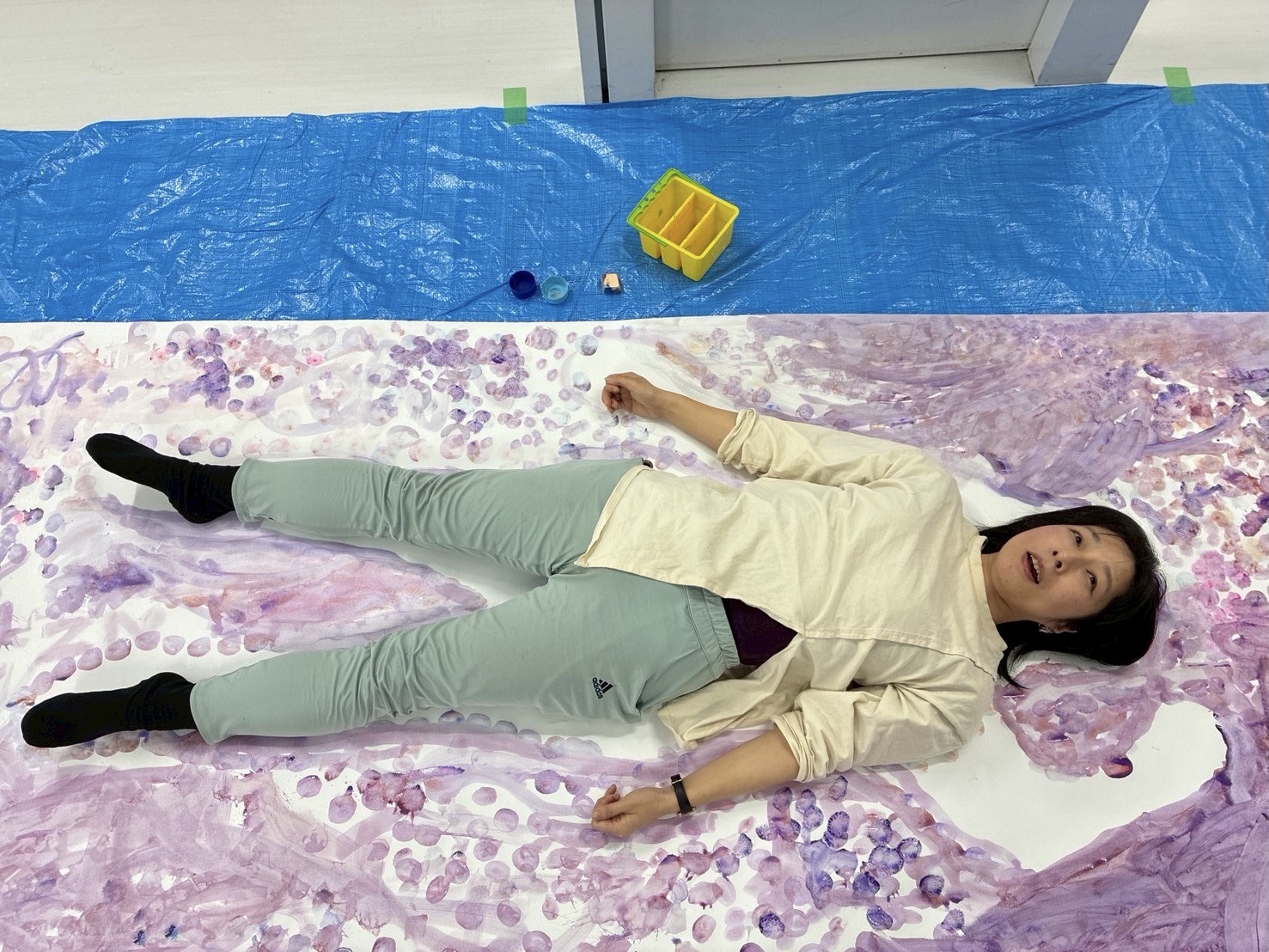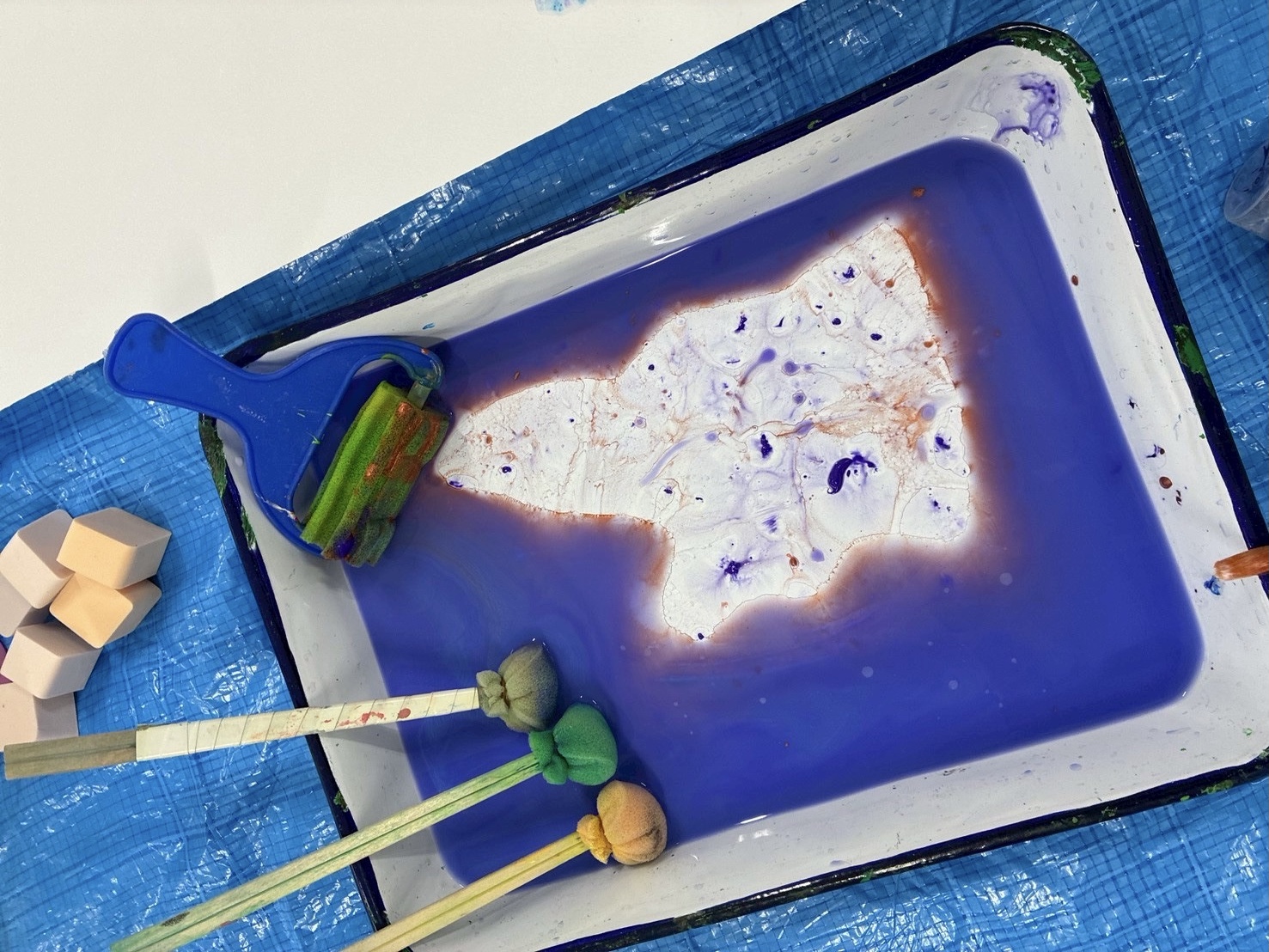 トレイに絵の具を溶いて、準備したら…