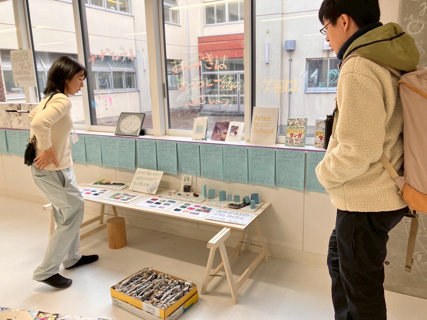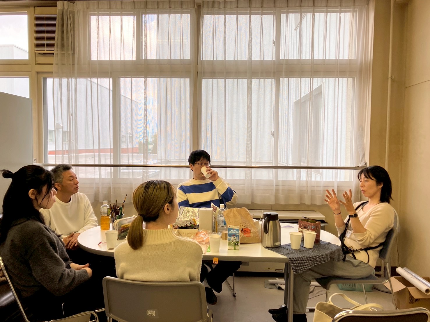 いったんアトリエに戻って、ブレイクタイム。あっちと漆氏がミニトーク。