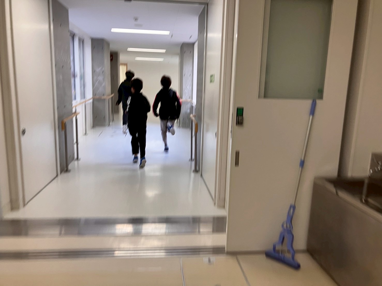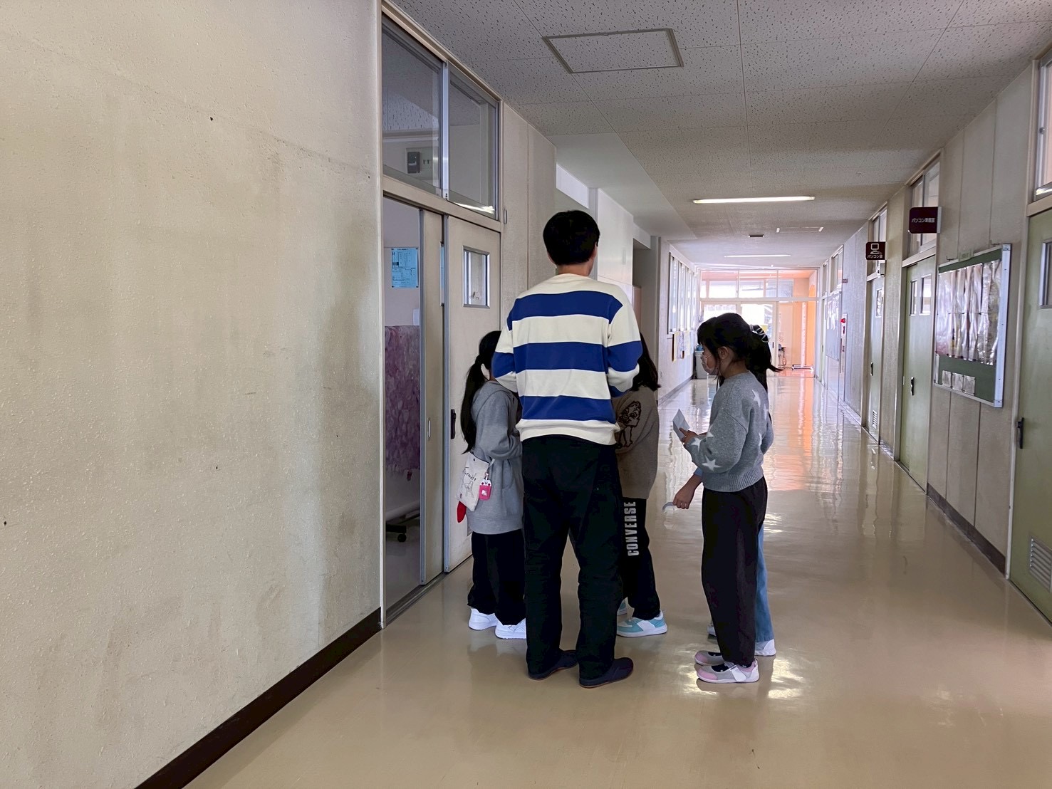 給食のあとしばらくして、漆氏と学生さんは下校。