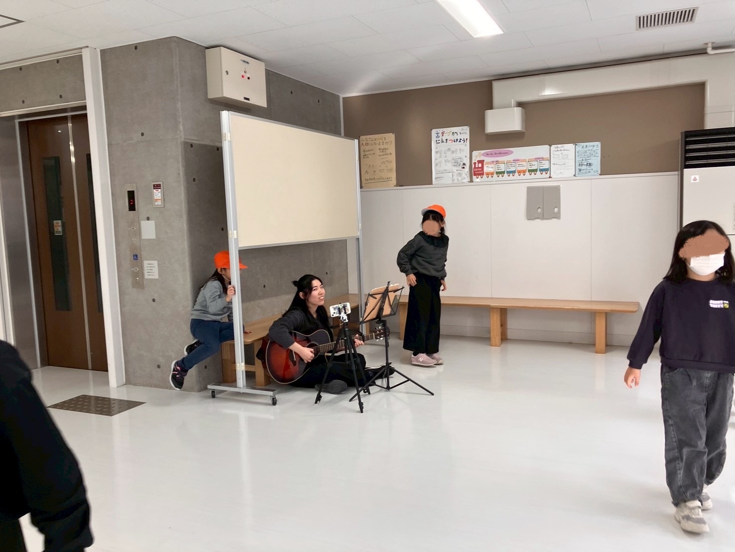 中休みが始まると、ひかりさんは再び中庭のホールで歌を。