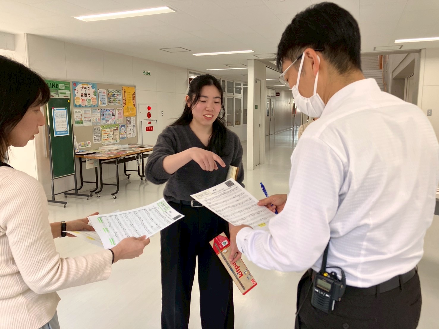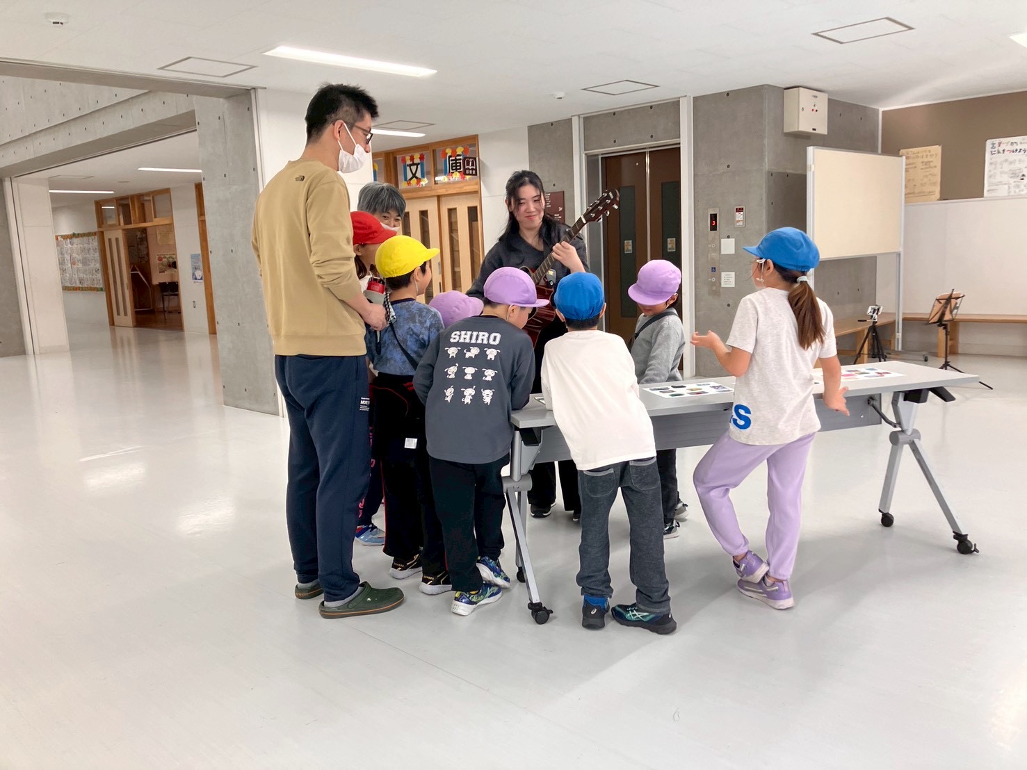 通りかかった教頭先生にも。先日の発表会でギターを弾いていらしたので、演奏をお願いしてみると、子どもたちの節目の時にバンドを組んで演奏をされているお話とか、遠藤先生も弾けるらしいなど、耳寄り情報をいただく。