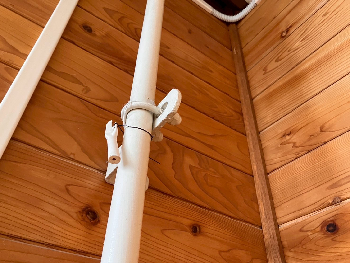 天井には無理かもしれないけれど、垂らすのなら…巻紙を試しに吹き抜けから吊るしてみる。