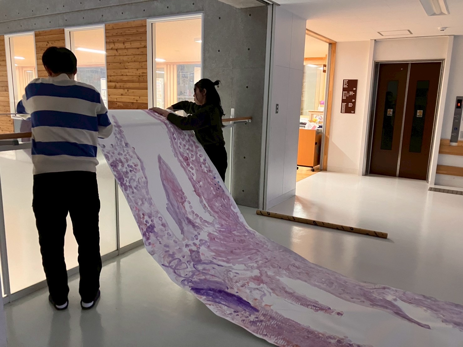 このおとどけアートであっちが仕掛けたアートについて、二つの視点から制作した話をしてくれた。ミクロとマクロ、あるいはミニマムとマキシマム、遠く…俯瞰したところから近くにより近づいて。大きいものと小さいものという二つの対比から見えてくるもの。