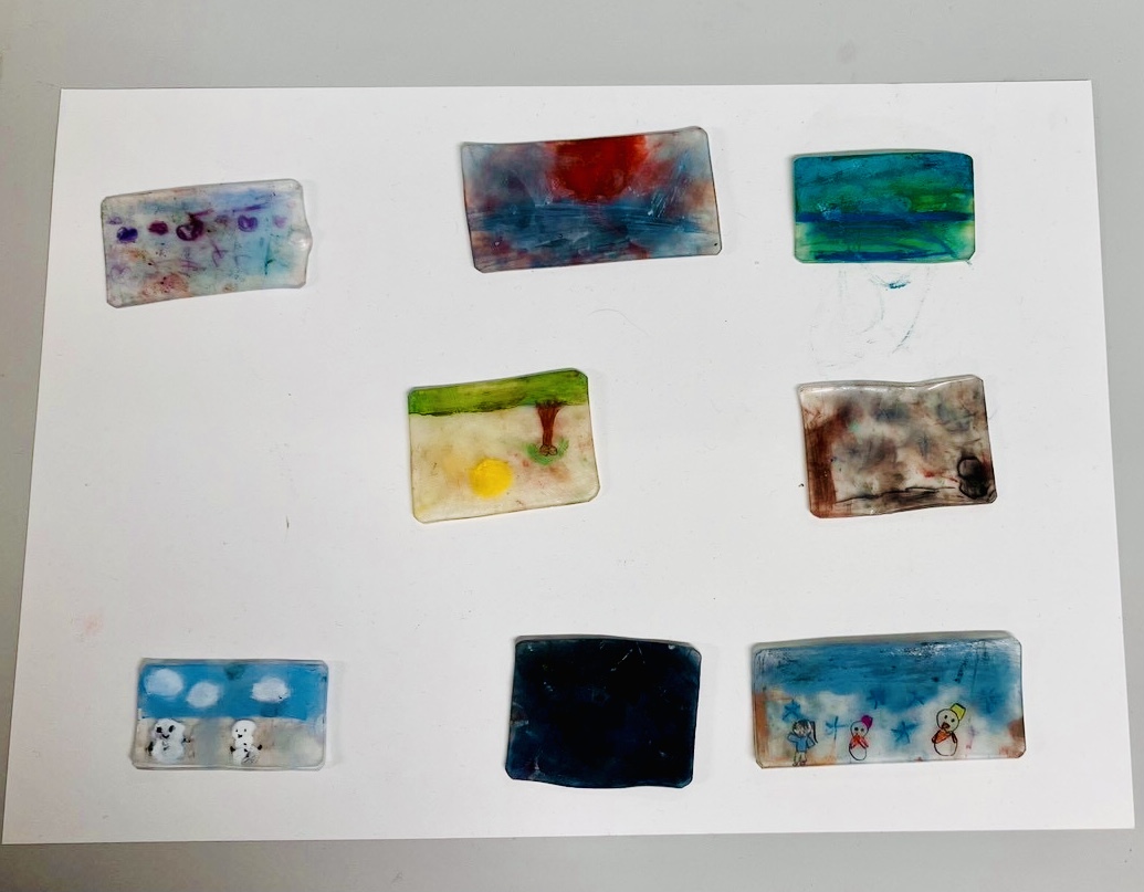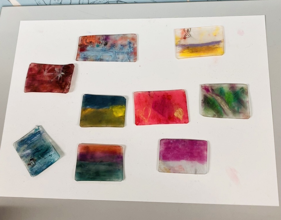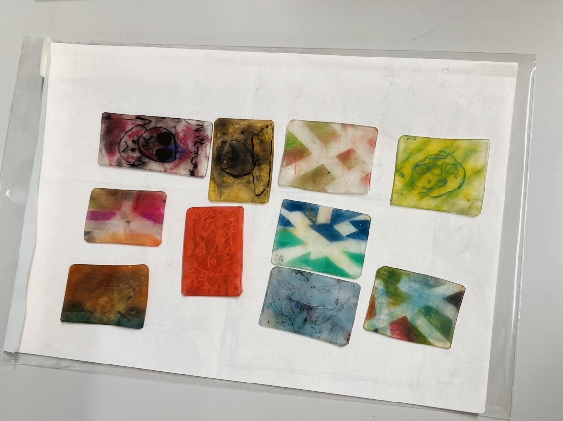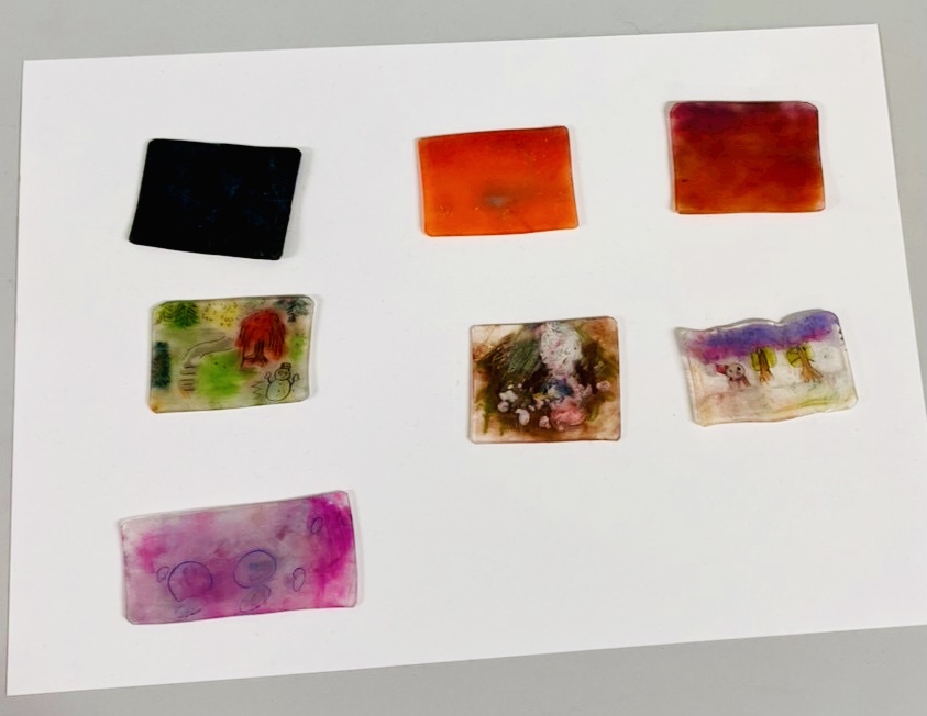 あっちが焼いた「ちぢみ絵」も、十センチほどの大きさの薄いシートから、手のひらに乗る小さなかけらに。