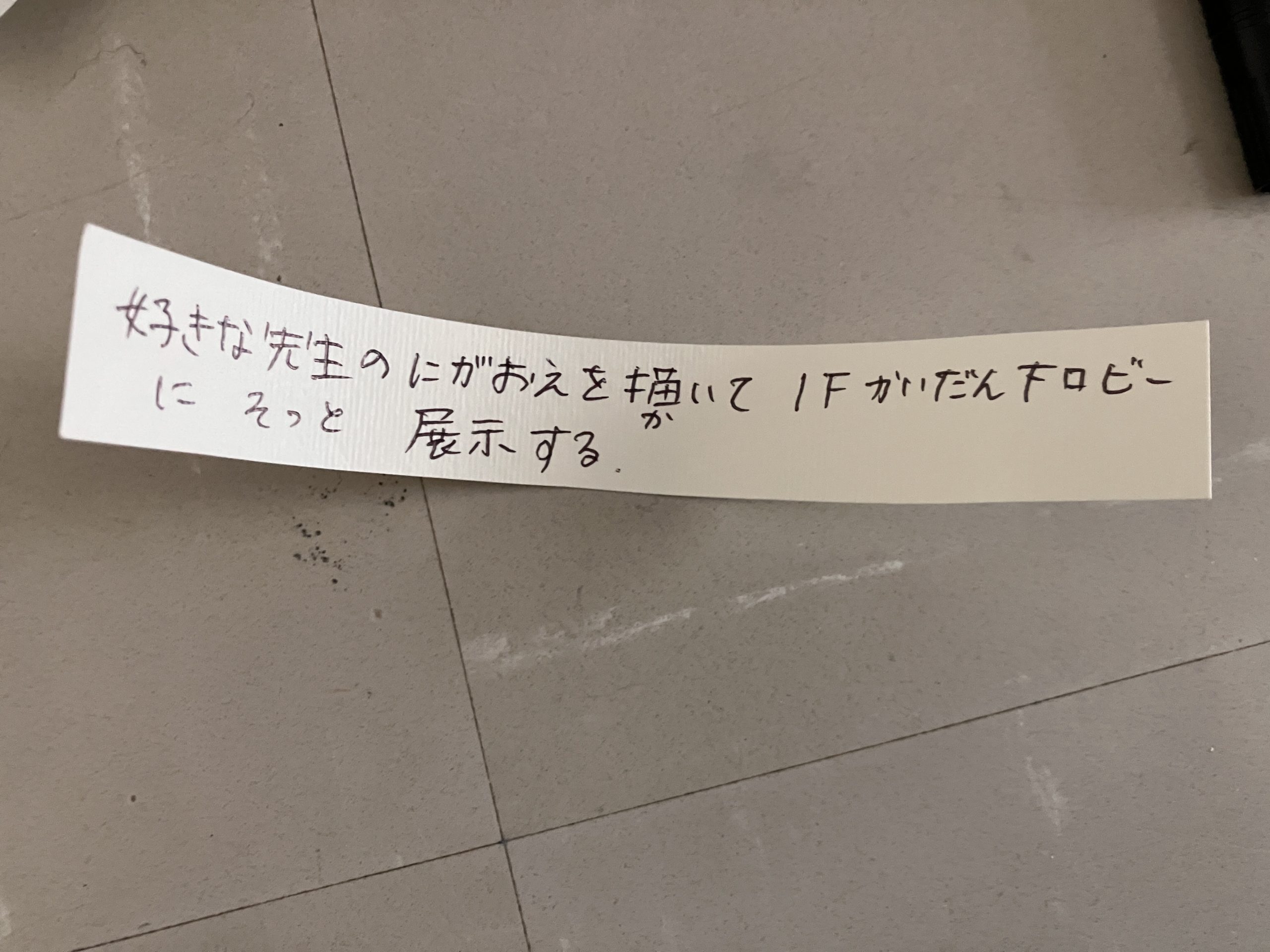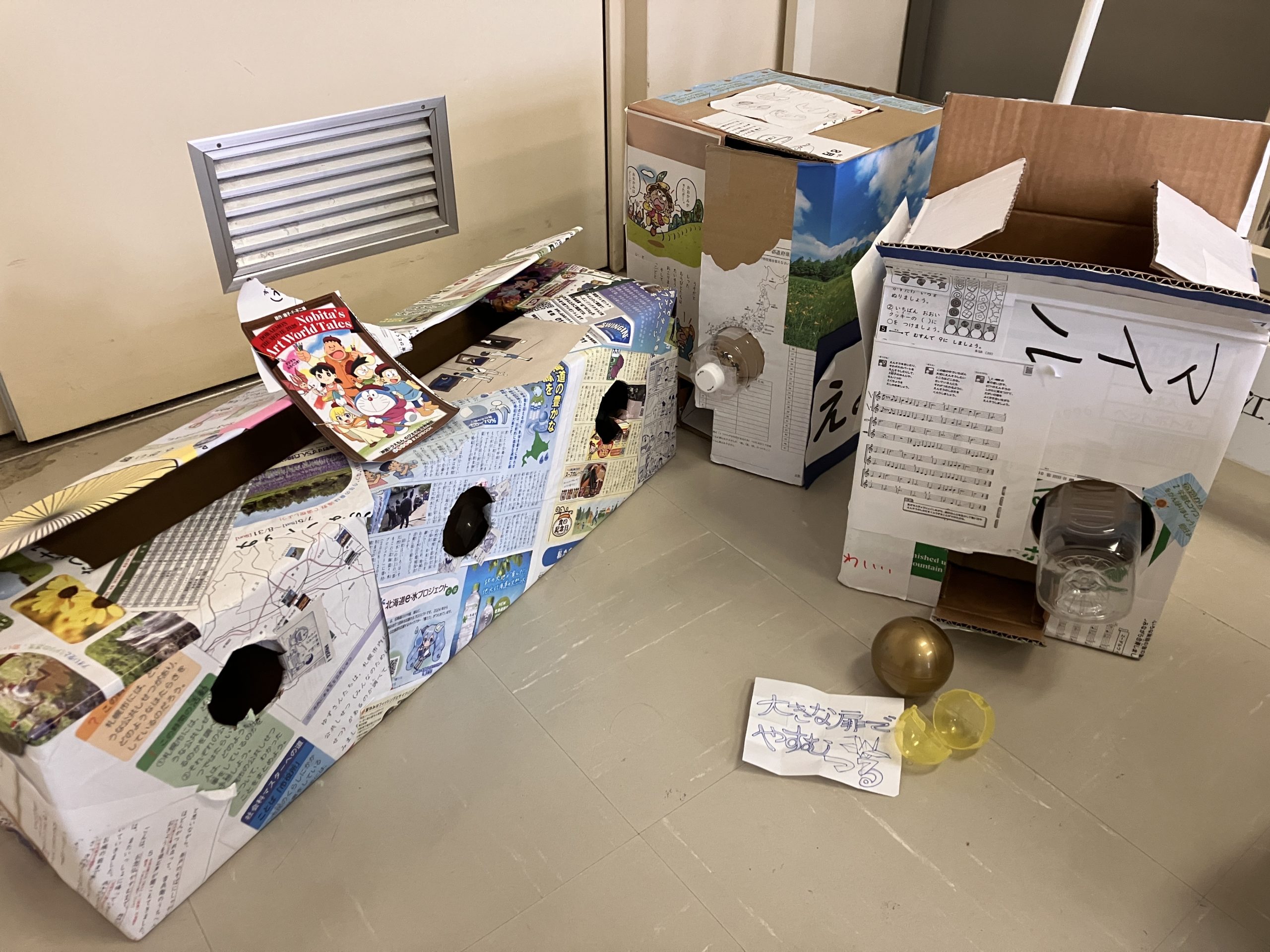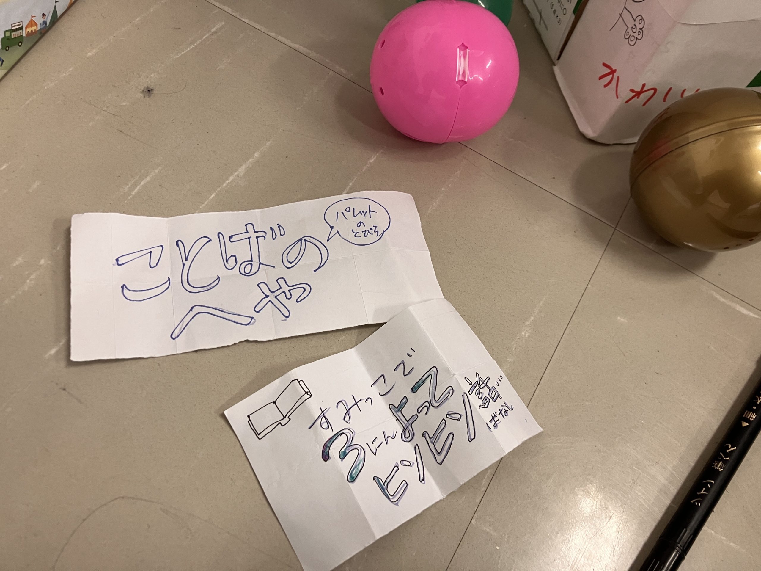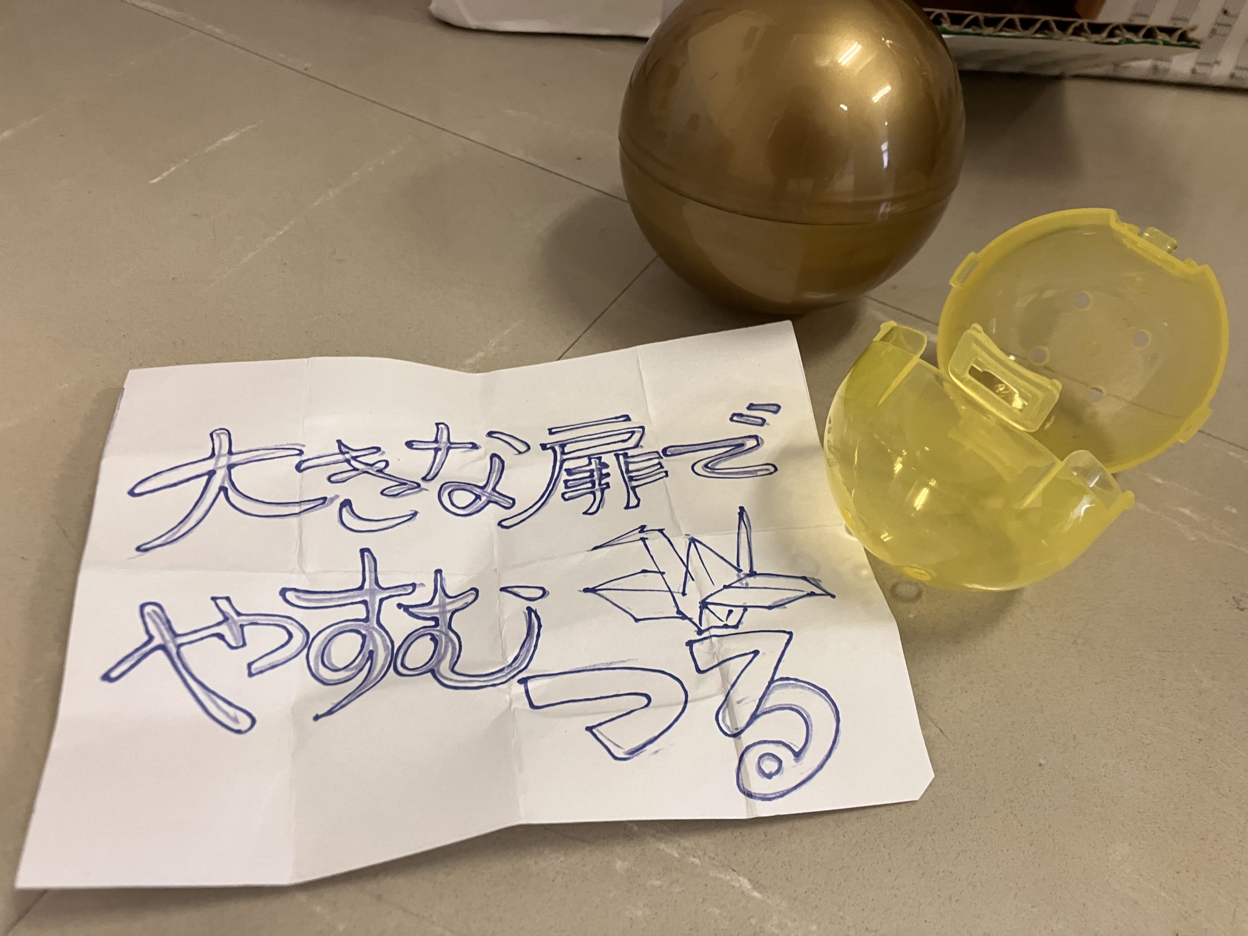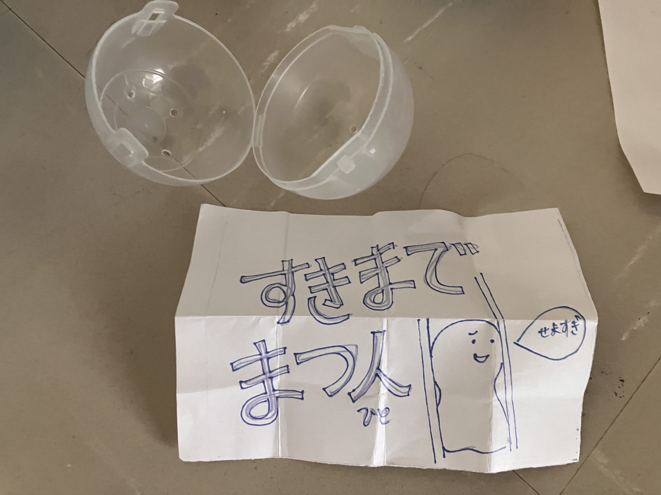 中休みが終わったら、指示書にあるヒントの小さなものたちのいる場所を見つけられても、見つからなくても、指示書をガチャのカプセルに戻して一階の回収ボックスに入れること