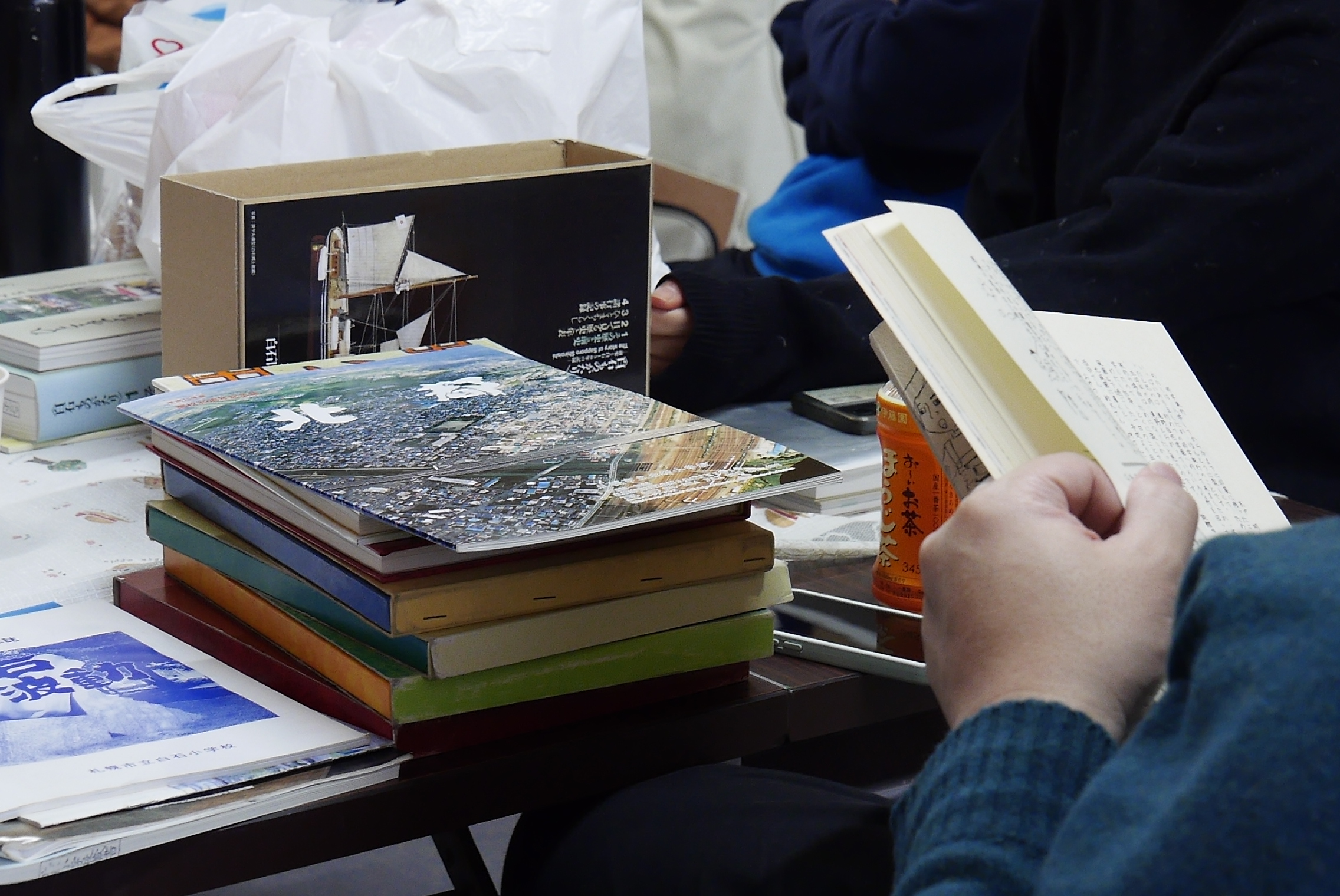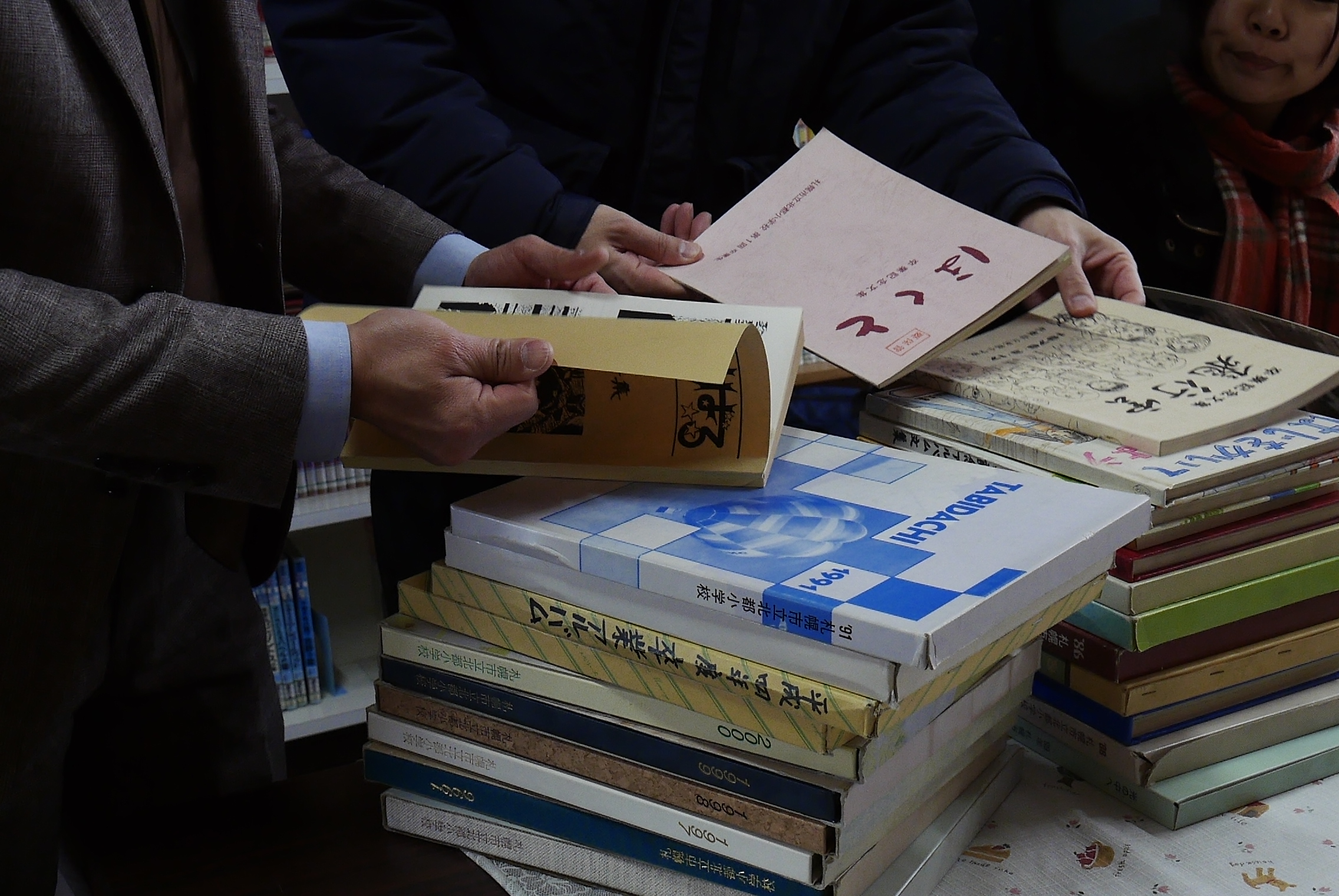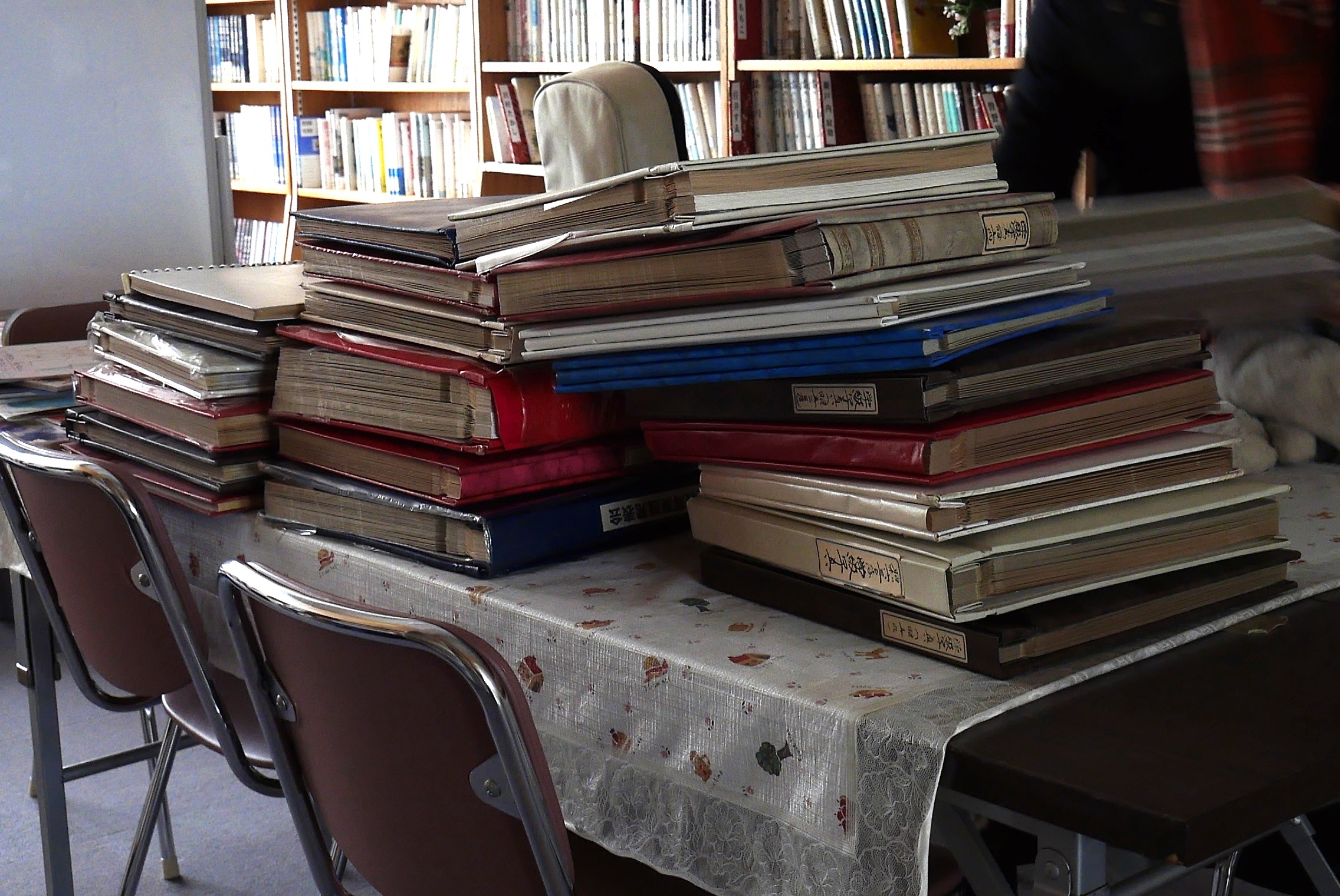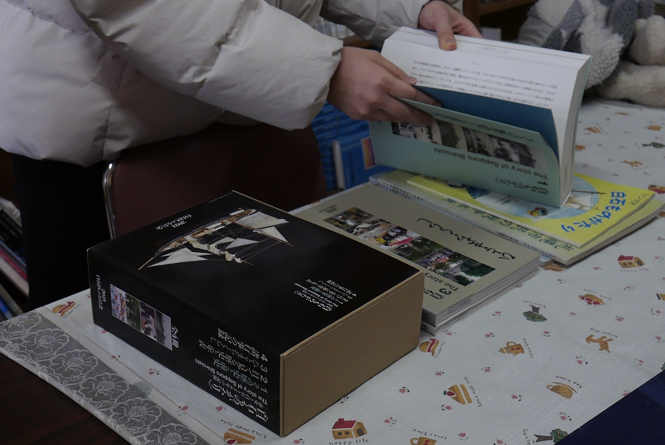 行事や授業の風景を記録した写真アルバムと、卒業生たちの作文を収めた卒業アルバム、それから、白石区や北都小学校周辺地域の歴史について書かれた書籍群。