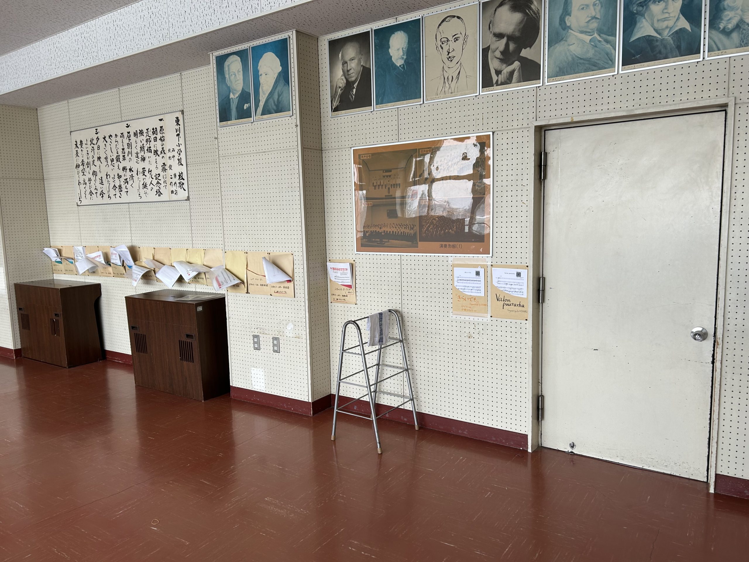 そして東川下小学校で披露した二曲をピアノ譜に編曲し、玄関前、二つの音楽室ともぐもぐルームに楽譜を置かせていただきました。弾いても弾かなくてもどっちでもいいです。ただ「なんか楽譜あるんだけど?」と不思議に思ってもらえたら嬉しいです。