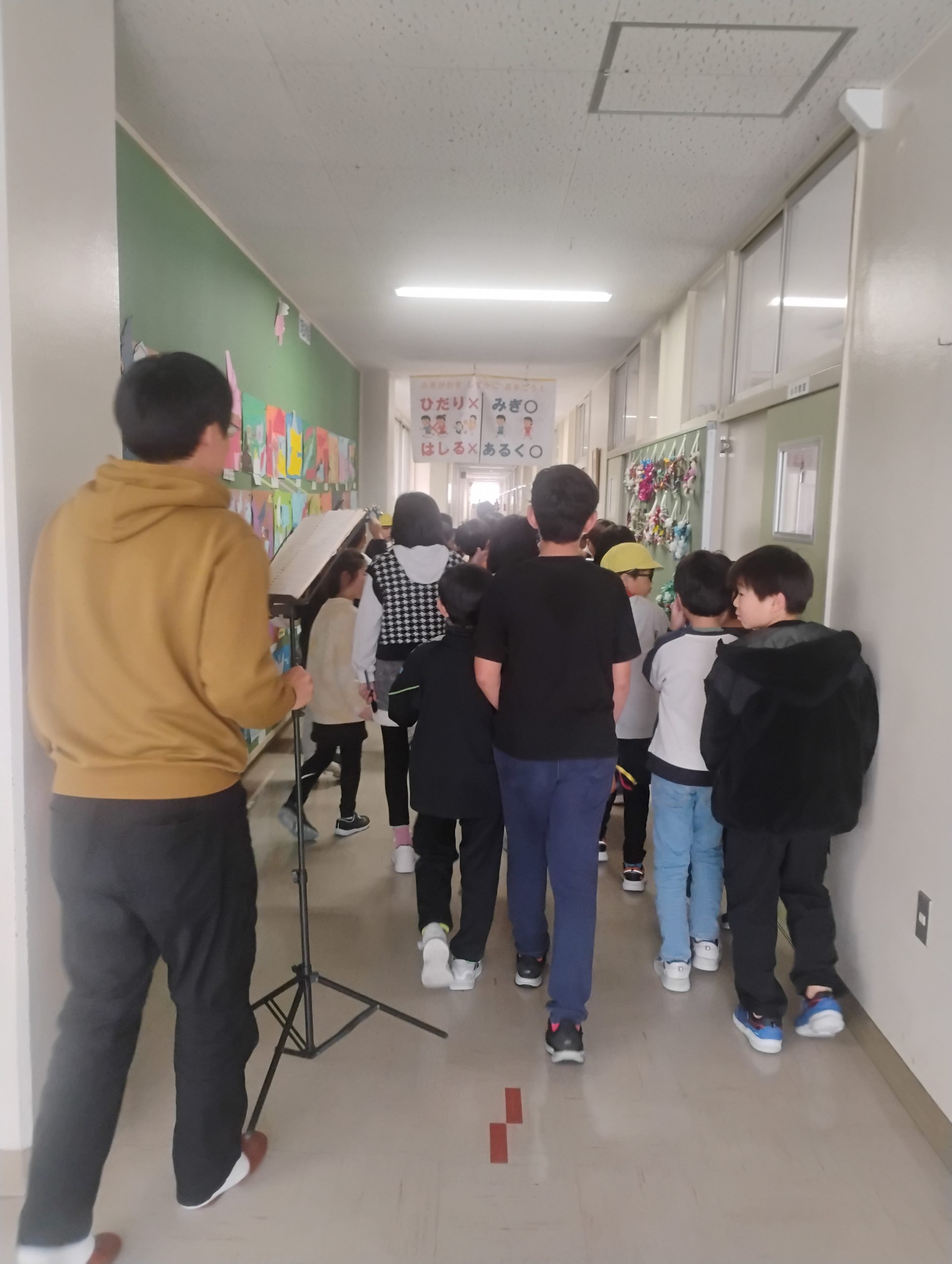 そして迎えたセッション当日。前回来てくれた子たちが仲間を連れ、楽器も持ってきてくれました。そして開口一番「おナスの歌、歌って!」とリクエスト。えーうれしすぎる。みんなも楽しかったんだなと実感しました。そしてこれを機に来校する日はおナスの歌をリクエストしてくれました。楽器もわざわざ持ってきてくれて、活動最終日はブレーメンの音楽隊のように校内を練り歩きました。