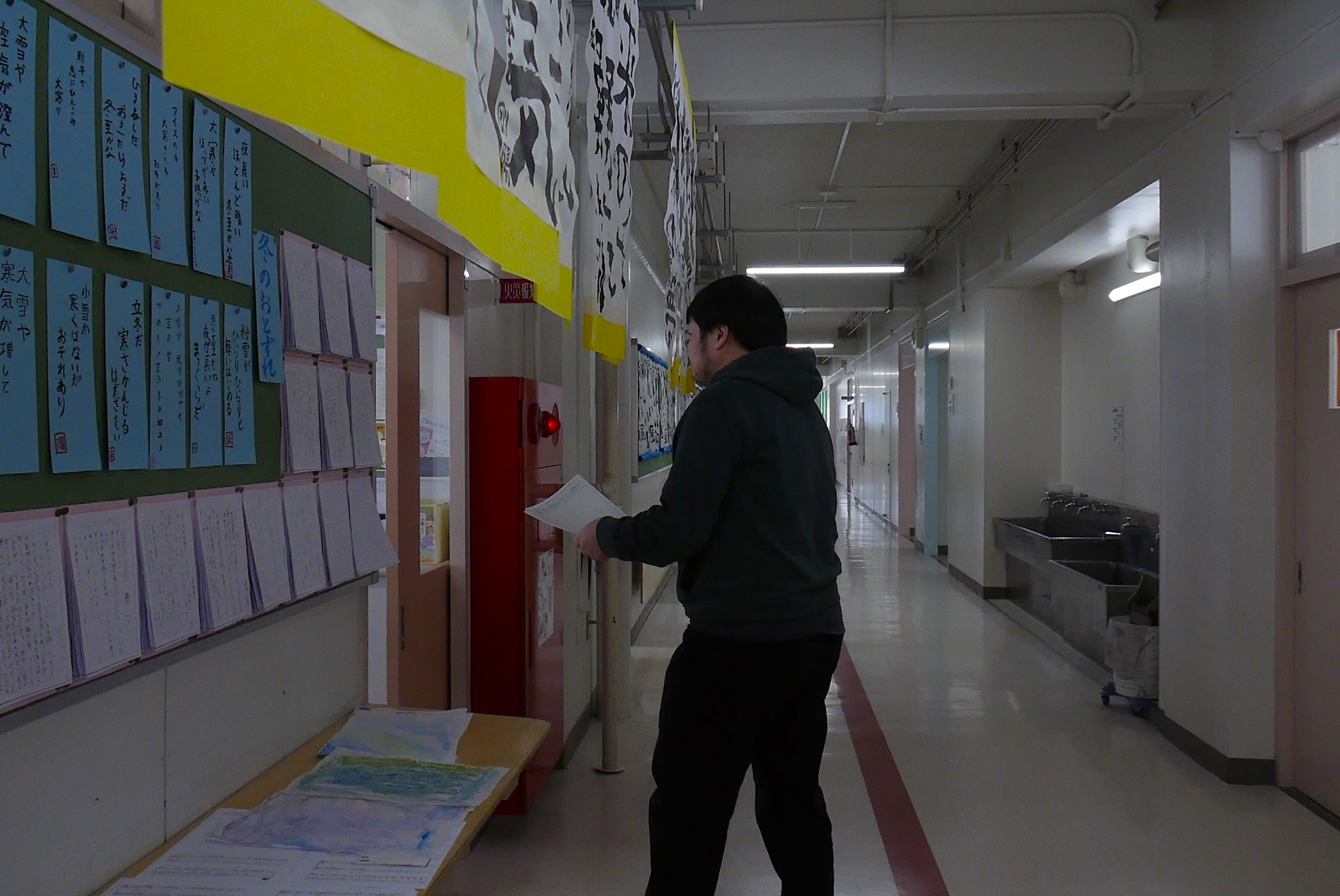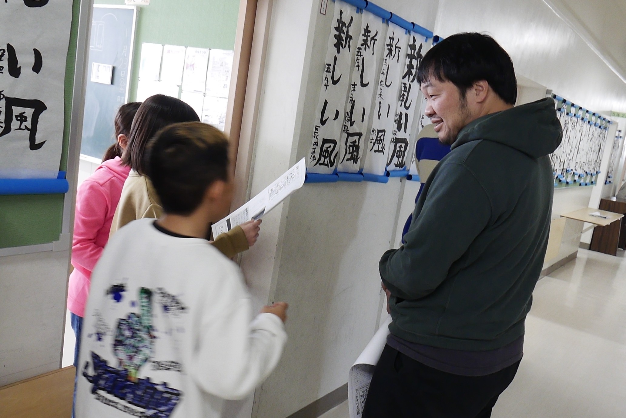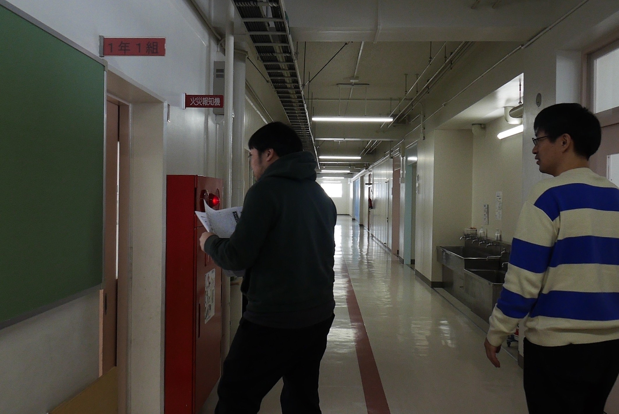校長室を飛び出して、全クラスに情報提供用プリントを配りに行きます。