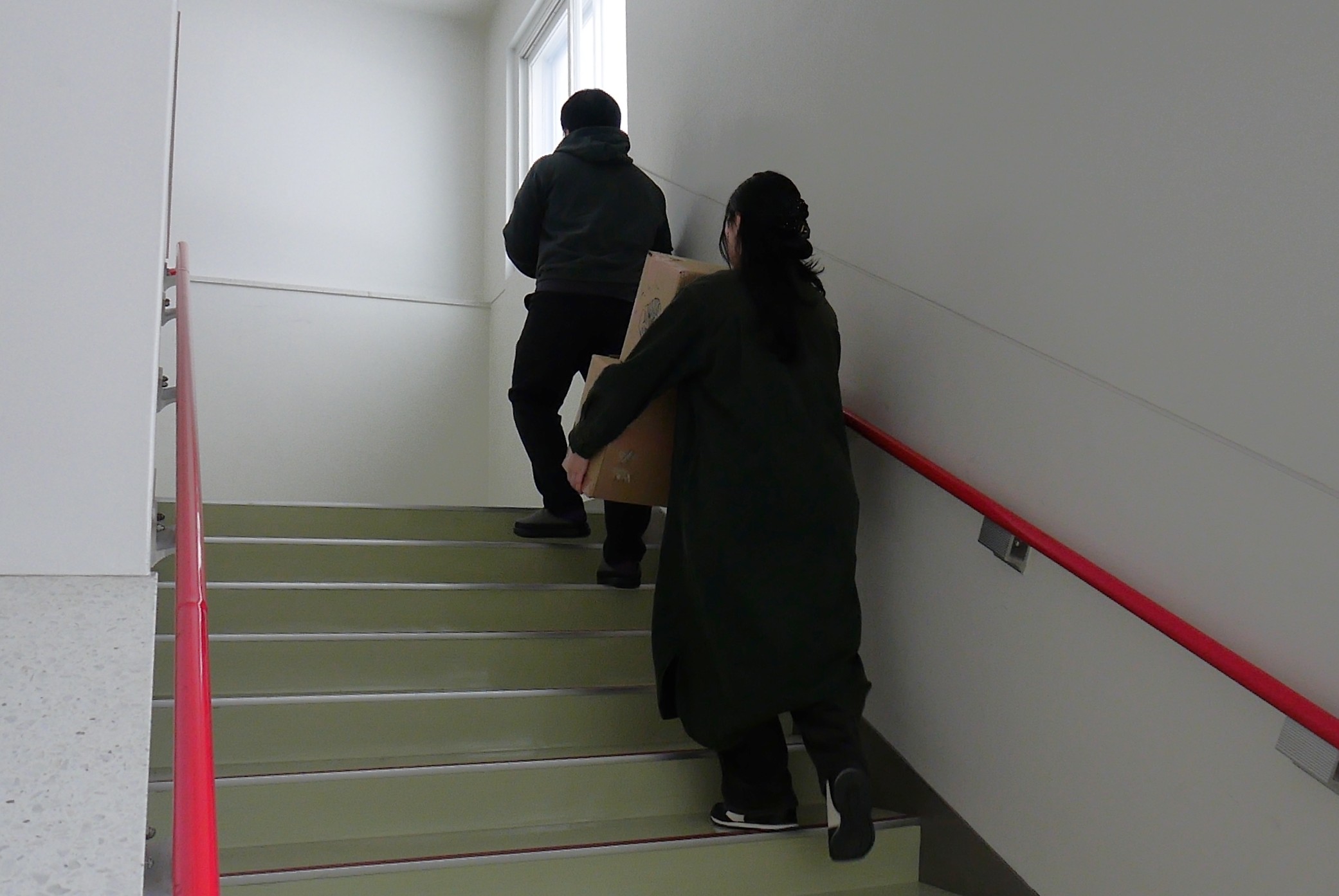 背中をくっつけあって廊下を歩きましたよ……!」