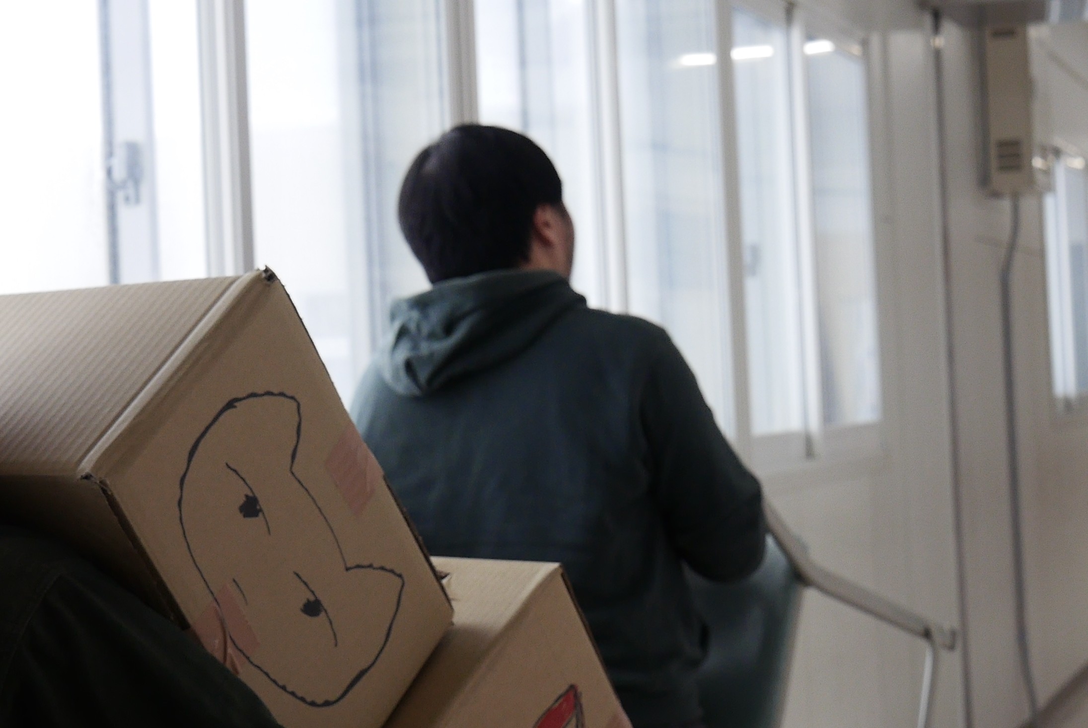 HIKARIさんのアシストで特製のポスト(ダンボールばこ)をお見せしつつ、