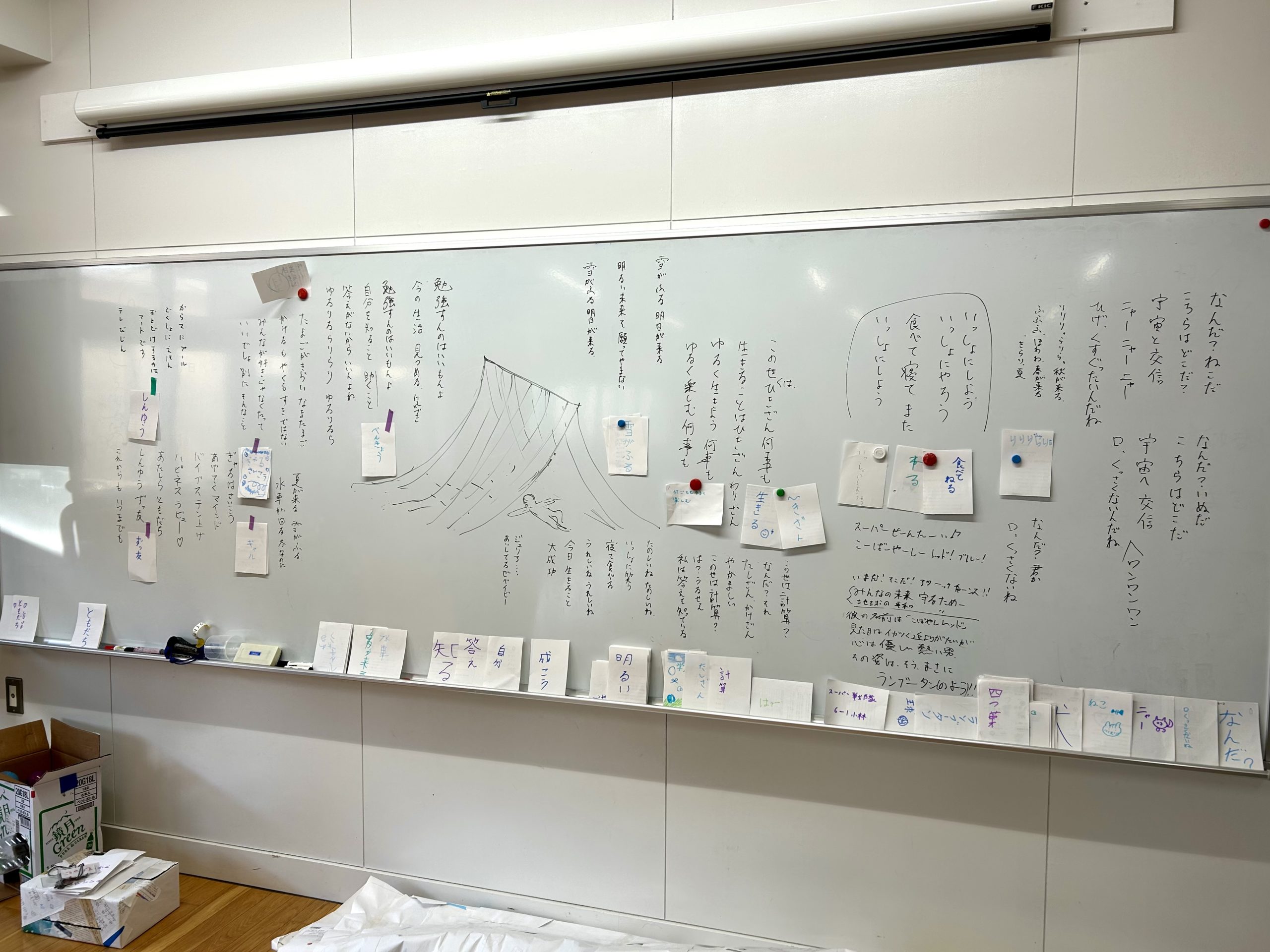 そしてもらった言葉の中から、なんとなく惹かれたものを選んで並べてみたり、眺めていて思いついた詩のようなものを、教室にあったホワイトボードに書いていったりしました。