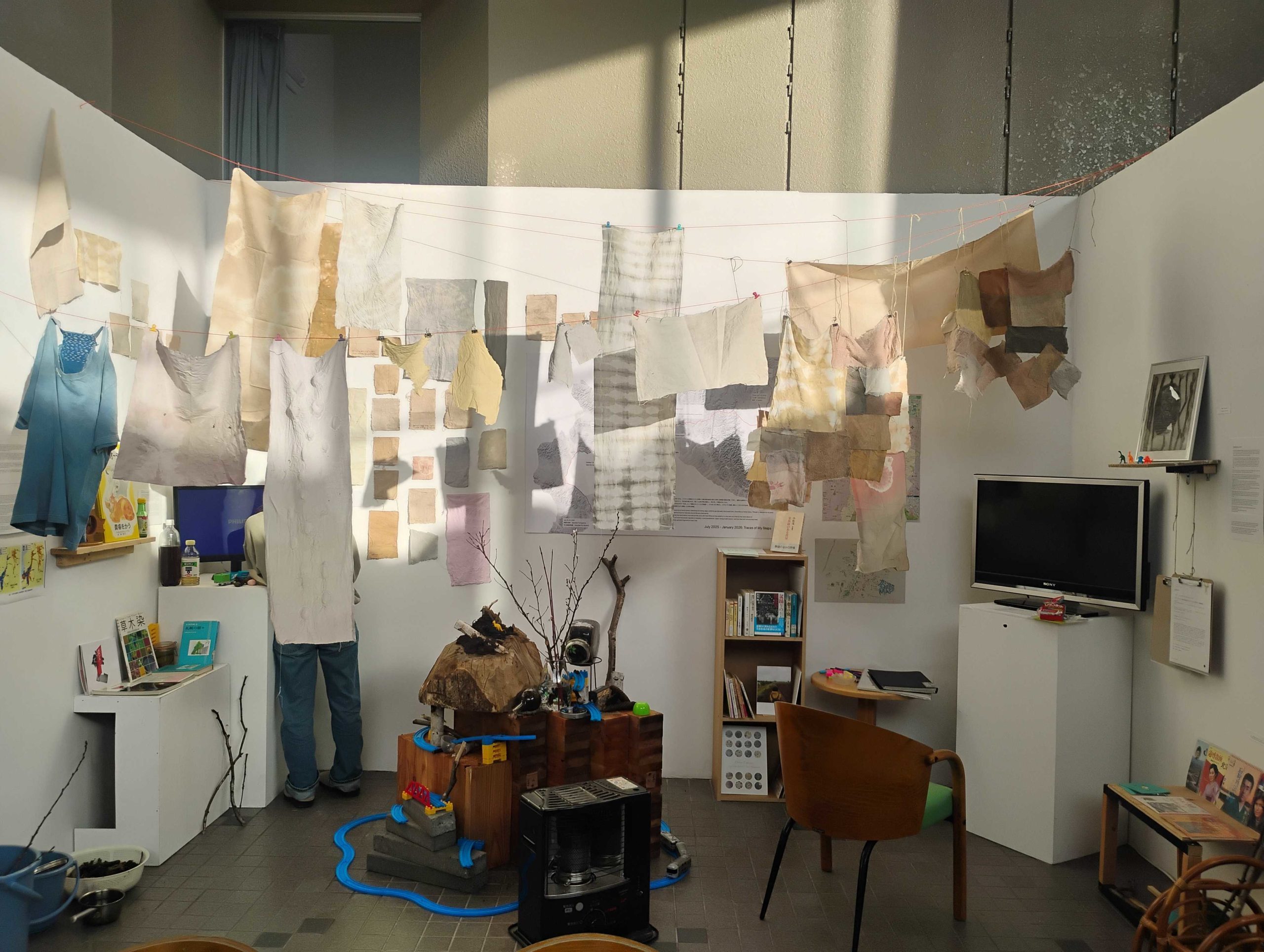 他にも小松さんからの、草木染をした布地をミシンで縫い合わせる作業やパフォーマンスも手伝って欲しいというお誘い?お願い?に、人材育成メンバーから数名が参加することになりました。