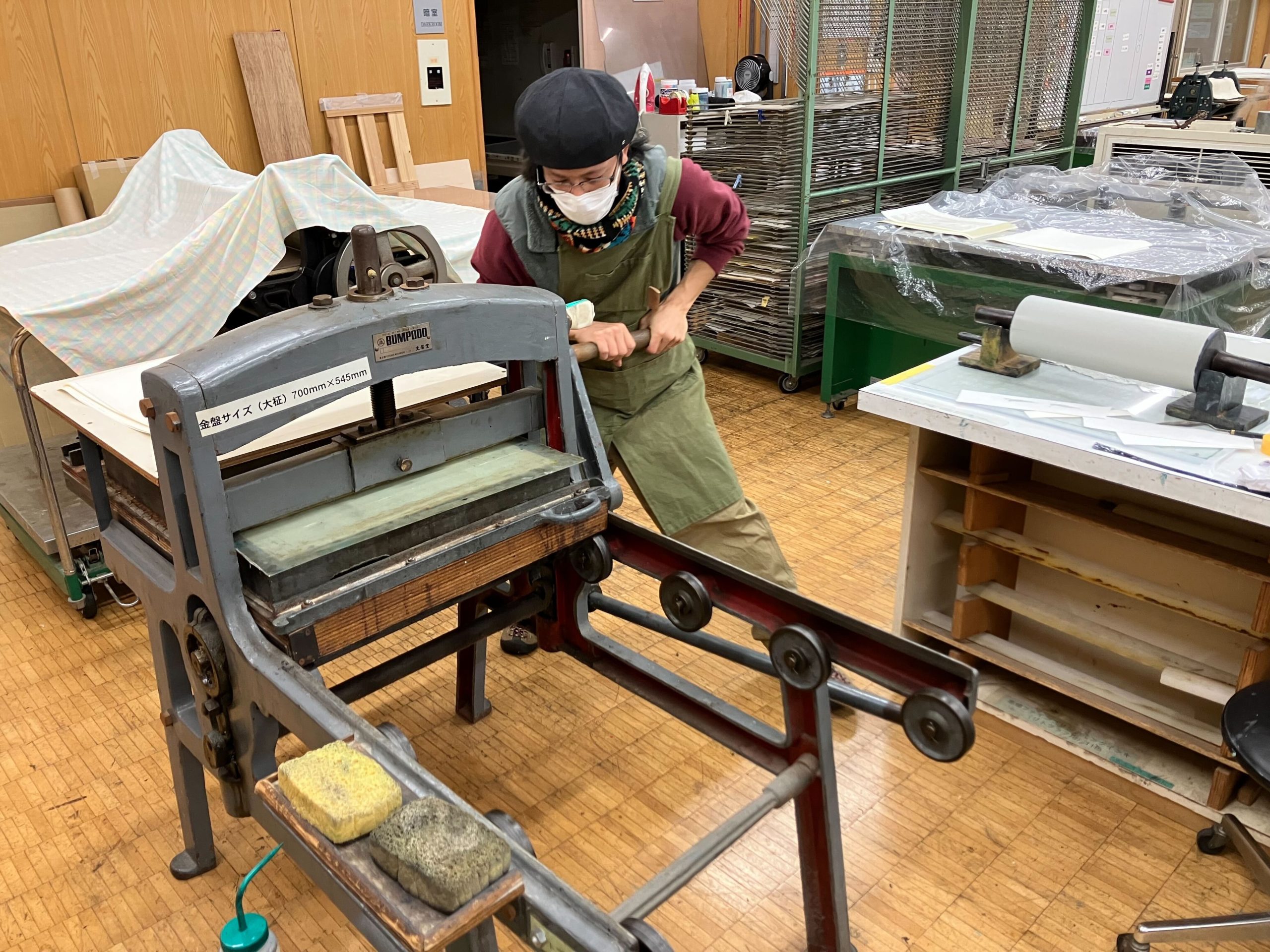 桑迫伽奈さん:実験段階は大変だったけれど、ほぼ成功しそうなところまできました。桑迫さんは銅版画経験者なので、刷り作業に関しては問題なく進んでいきます。写真製版(4色分解)での刷りは、元の写真とはだいぶイメージが変わりますが、それも面白くていいなと思っているとのこと。2/6公開制作は、制作の途中経過を見てもらうことになる予定。