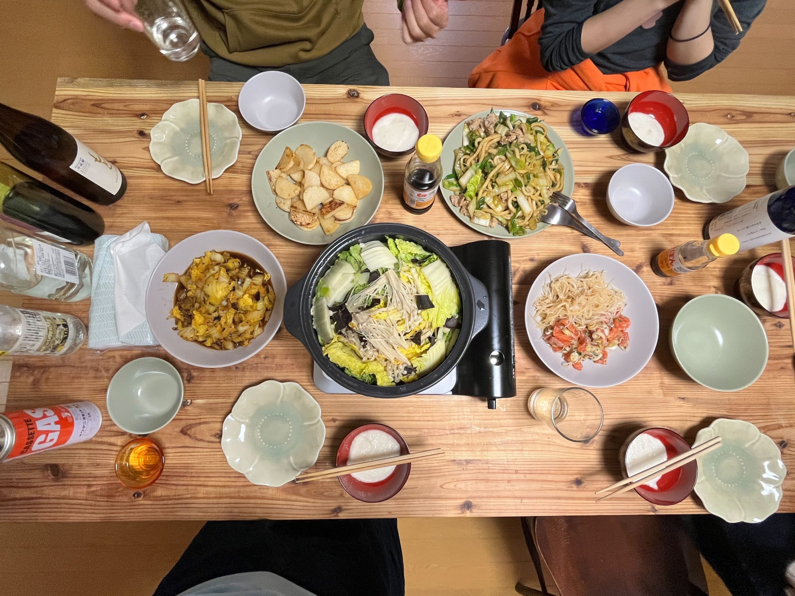 そして、夕食はスーパーで購入した1/4サイズのオレンジ白菜を土鍋でミルフィーユ鍋、ジンギスカンのタレ炒め、焼きうどん。オレンジ白菜はめっちゃ甘くて最高に美味しかったとのこと。他にもとろろ、長芋のソテー、サーモンマリネと大根のサラダと、豪華な夕食だったそうです。滞在したレジデンス施設には調味料やドレッシングなどが豊富に保管(過去の滞在者の寄付)されていたようで、楽しく自炊していた様子がうかがえます。